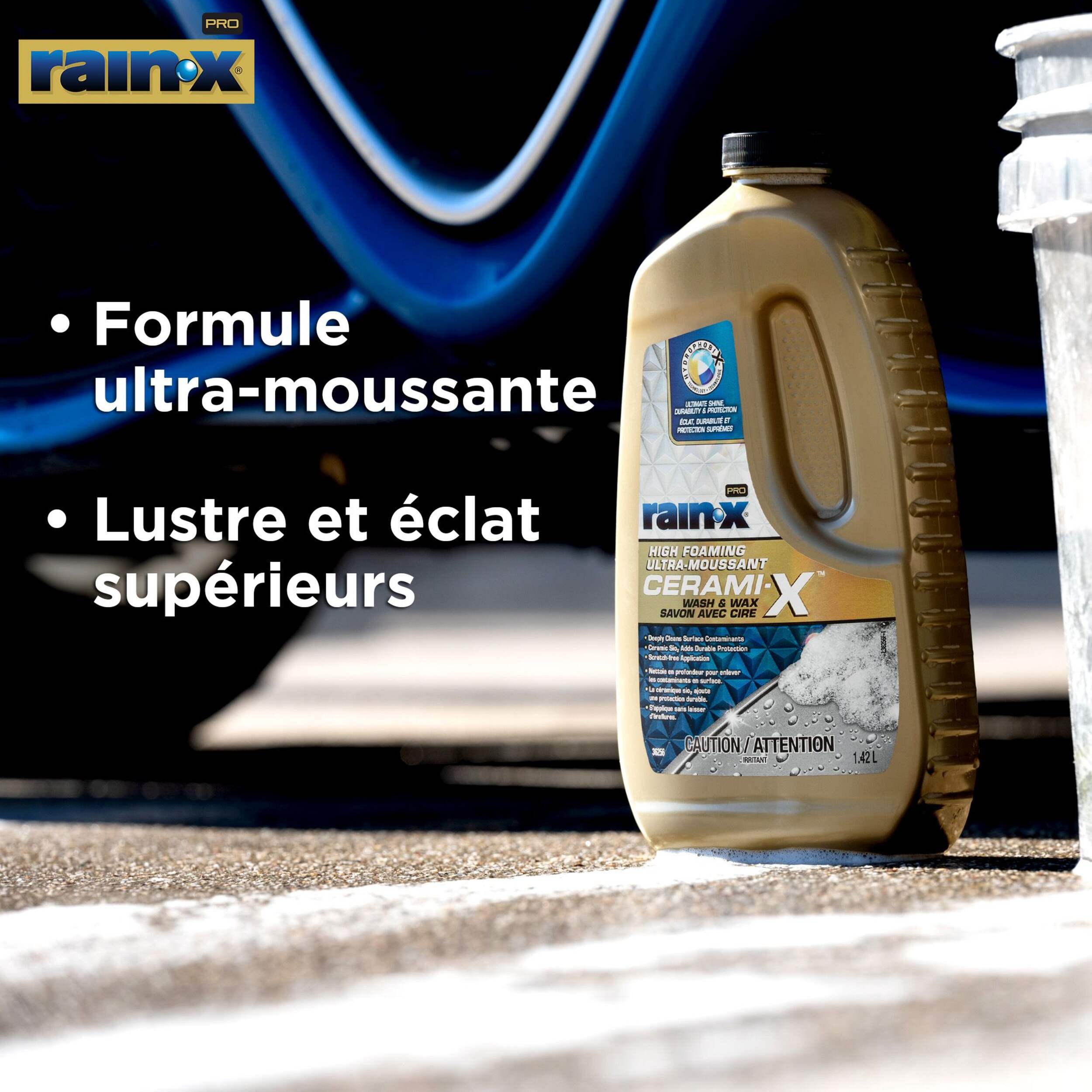 Lave-auto et cire très moussant Rain-X Pro offrant une formule de nettoyage en profondeur ultra-moussante éliminant la crasse de la route et les contaminants de surface