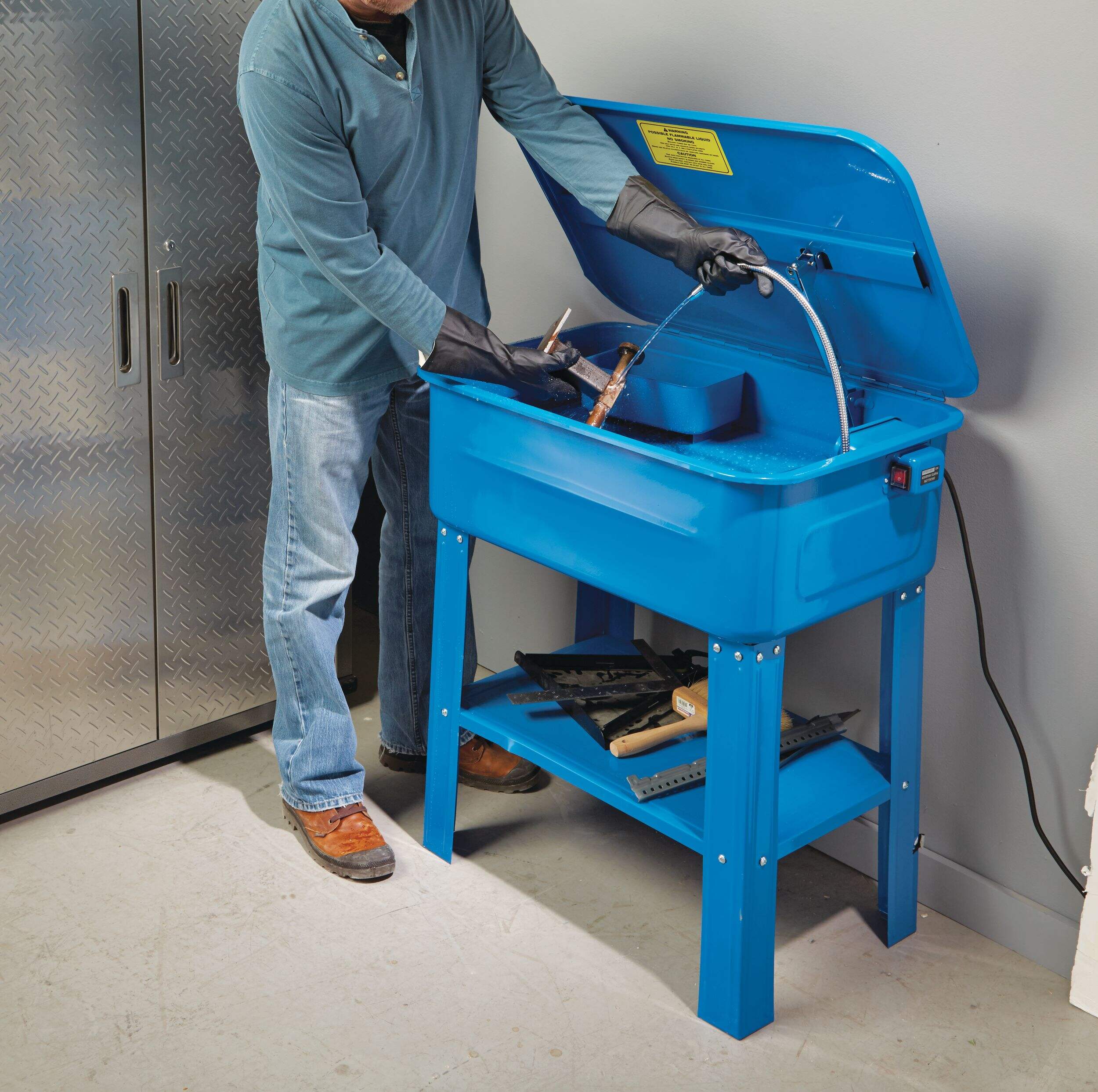 Nettoyeur pour pièces Mastercraft permettant un nettoyage pratique et sécuritaire des petits outils et pièces