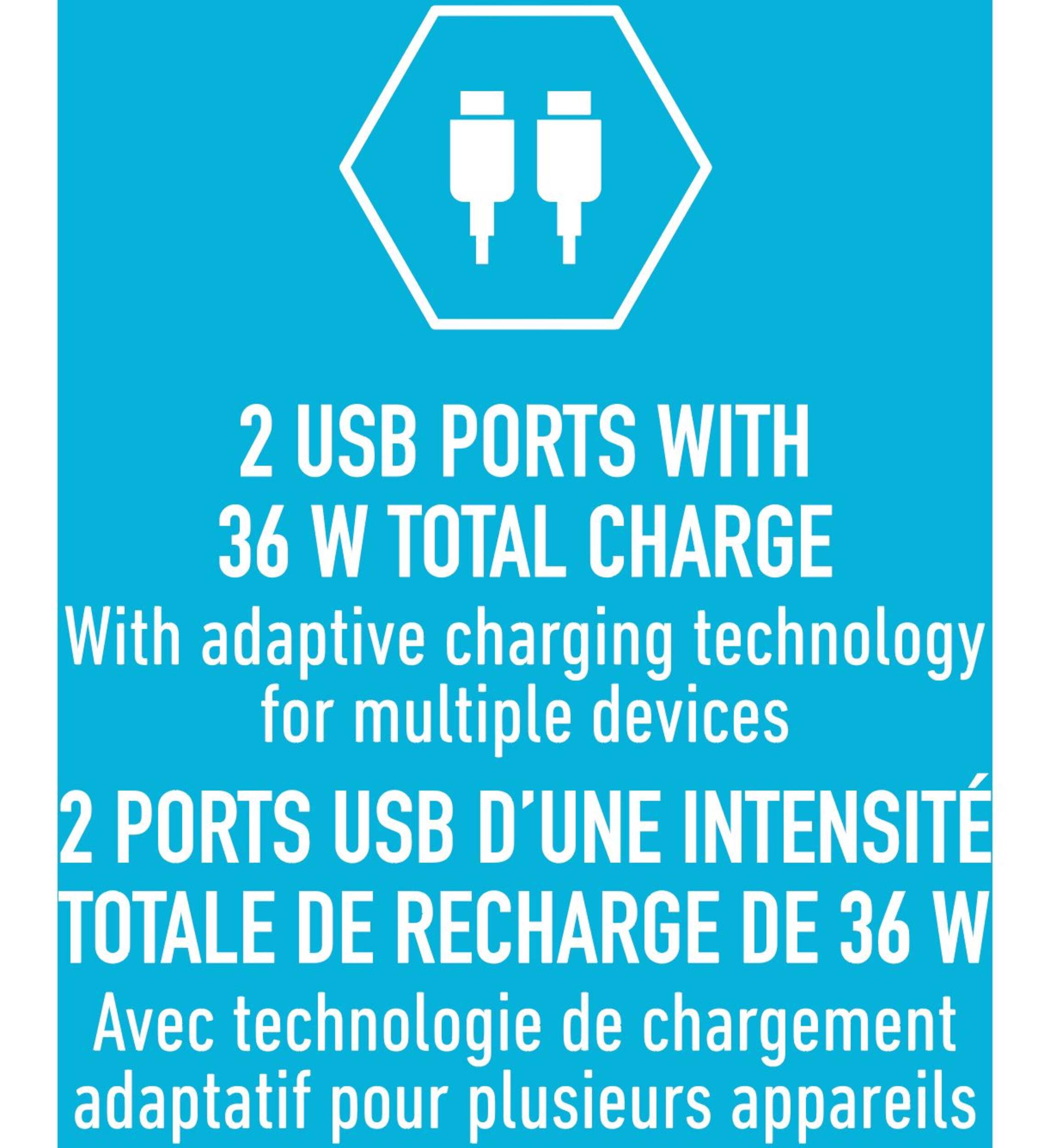 Comprend 2 ports USB pour charger 2 appareils à la fois