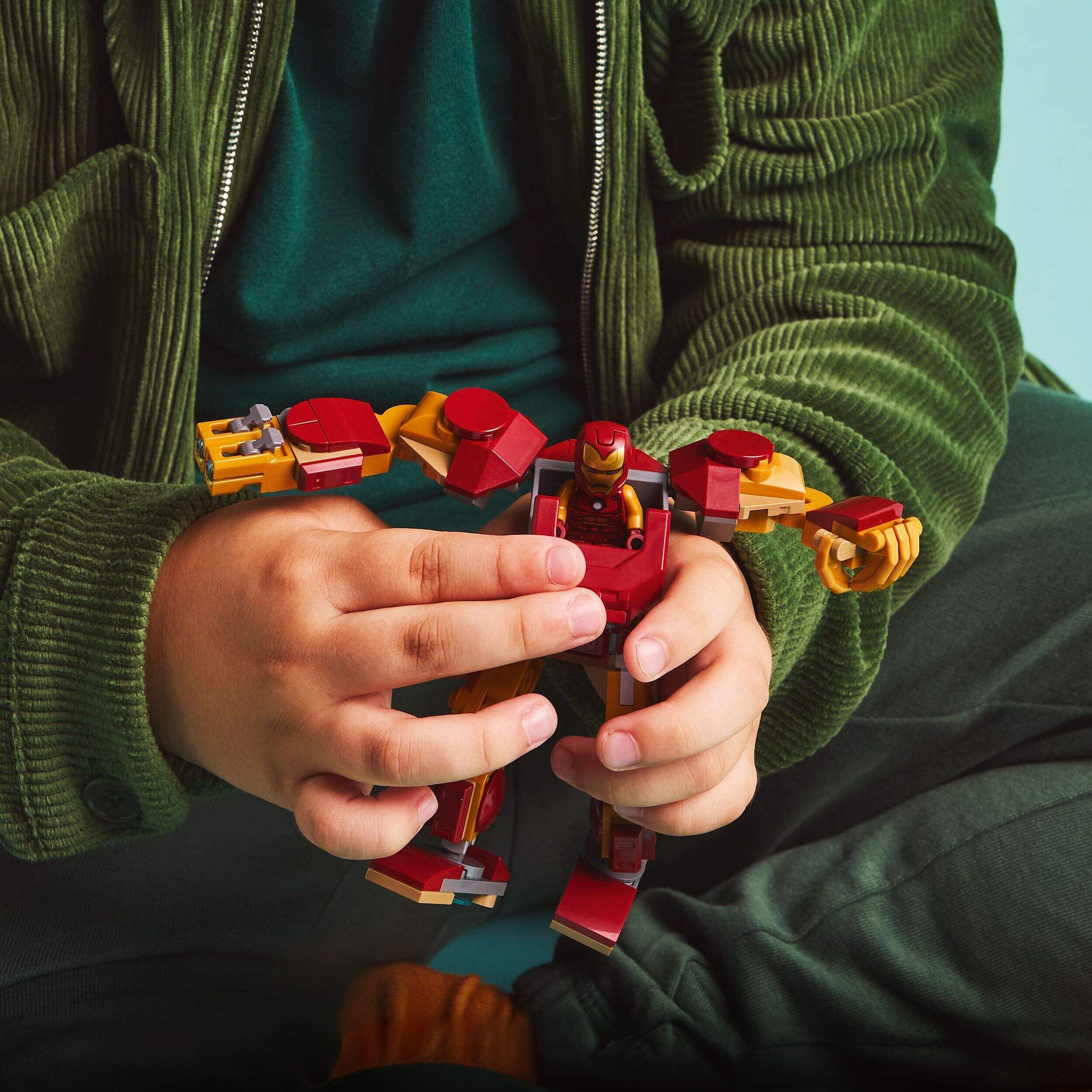 Robot articulé : avec des bras, des jambes, des doigts mobiles, et un torse qui s'ouvre pour révéler un habitacle qui peut accueillir la figurine d'Iron Man
