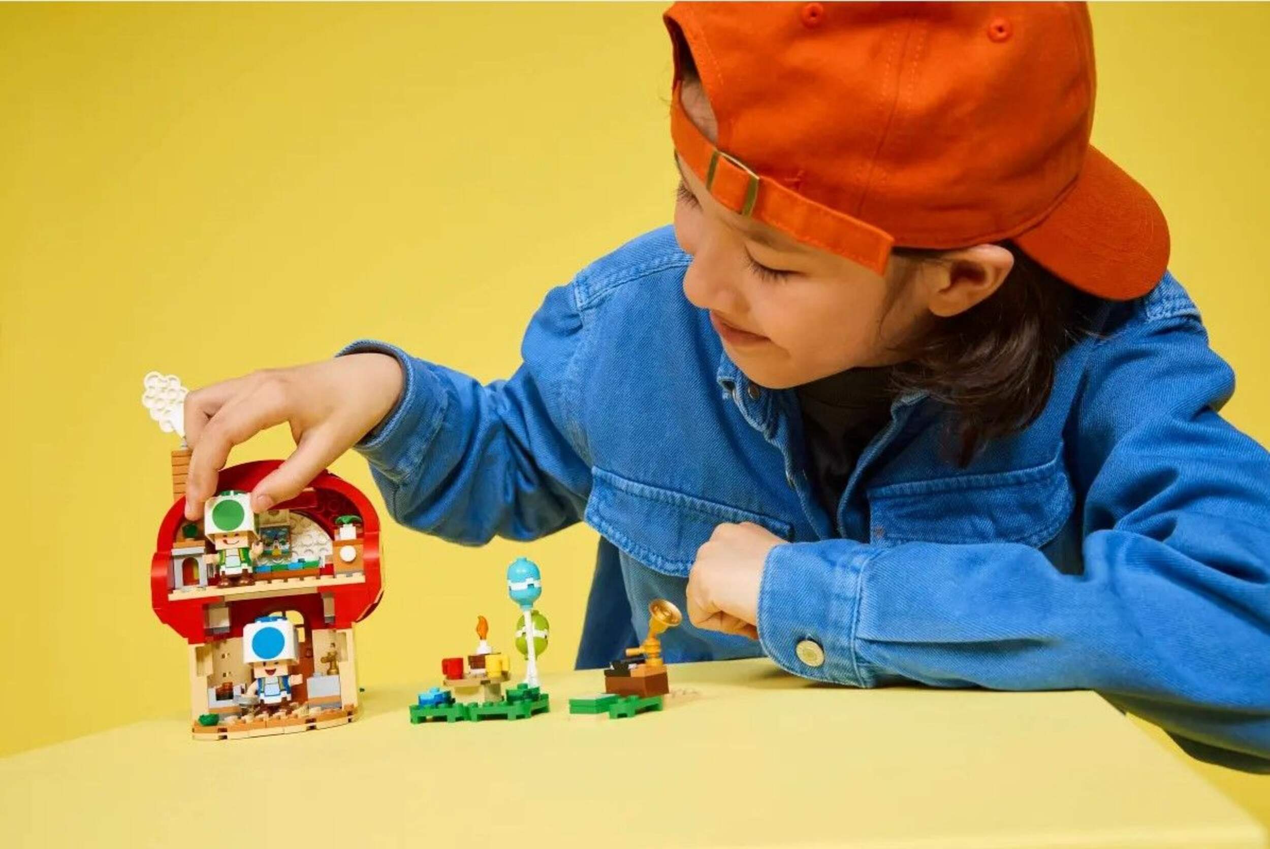 Permet aux jeunes amateurs de jeux vidéo âgés de 7 ans et plus de construire l'ensemble Fête chez les Toads LEGO Super Mario (72041), avec une cuisine, une chambre à coucher, une table de pique-nique et un gramophone rotatif