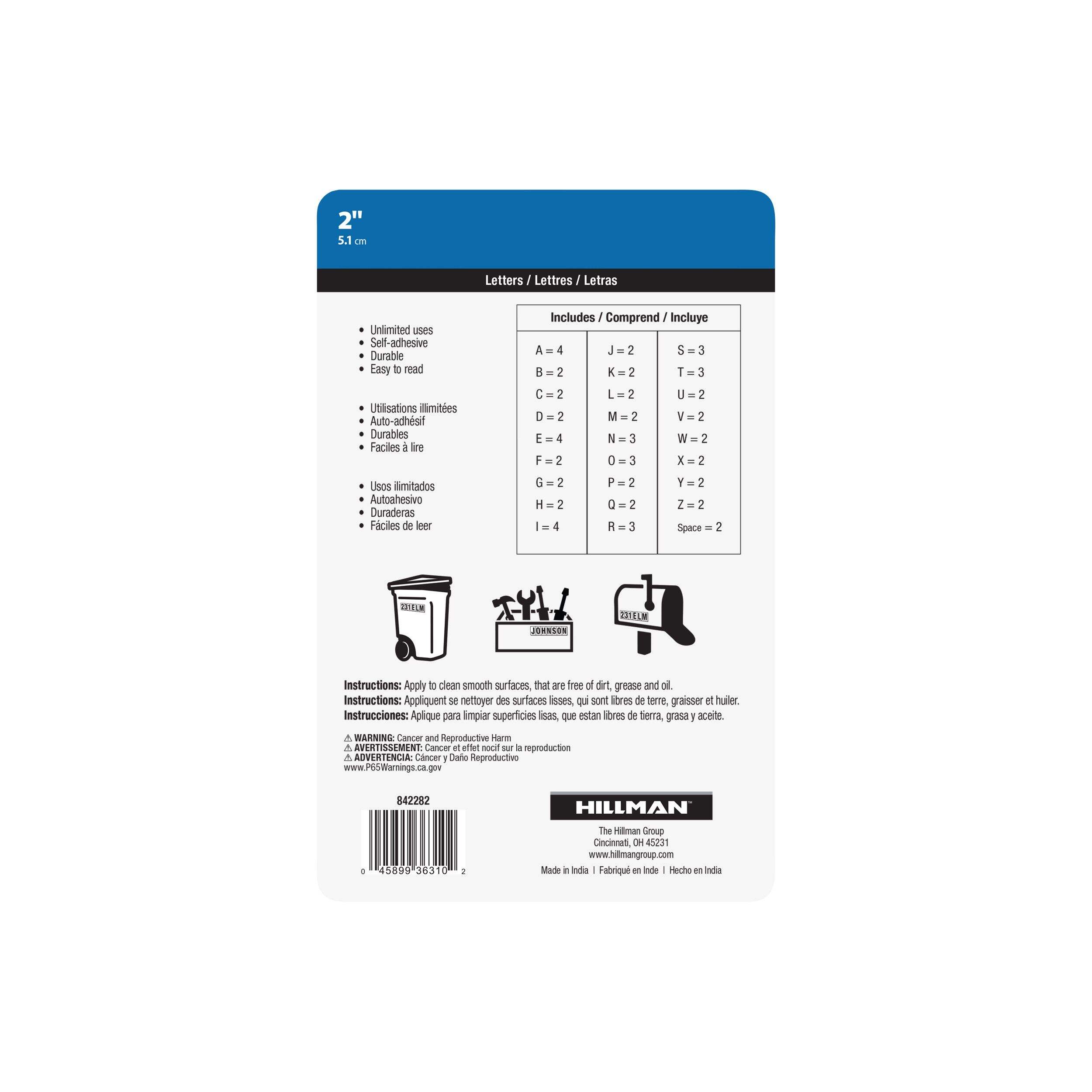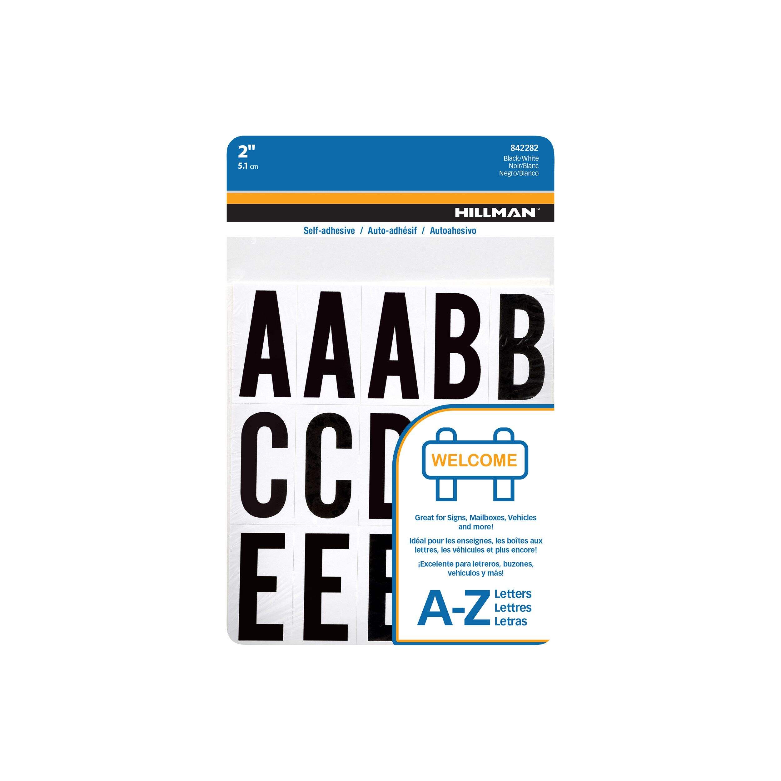 Lettres autocollantes Hillman pour créer des messages personnalisés, identifier des lieux, etc.