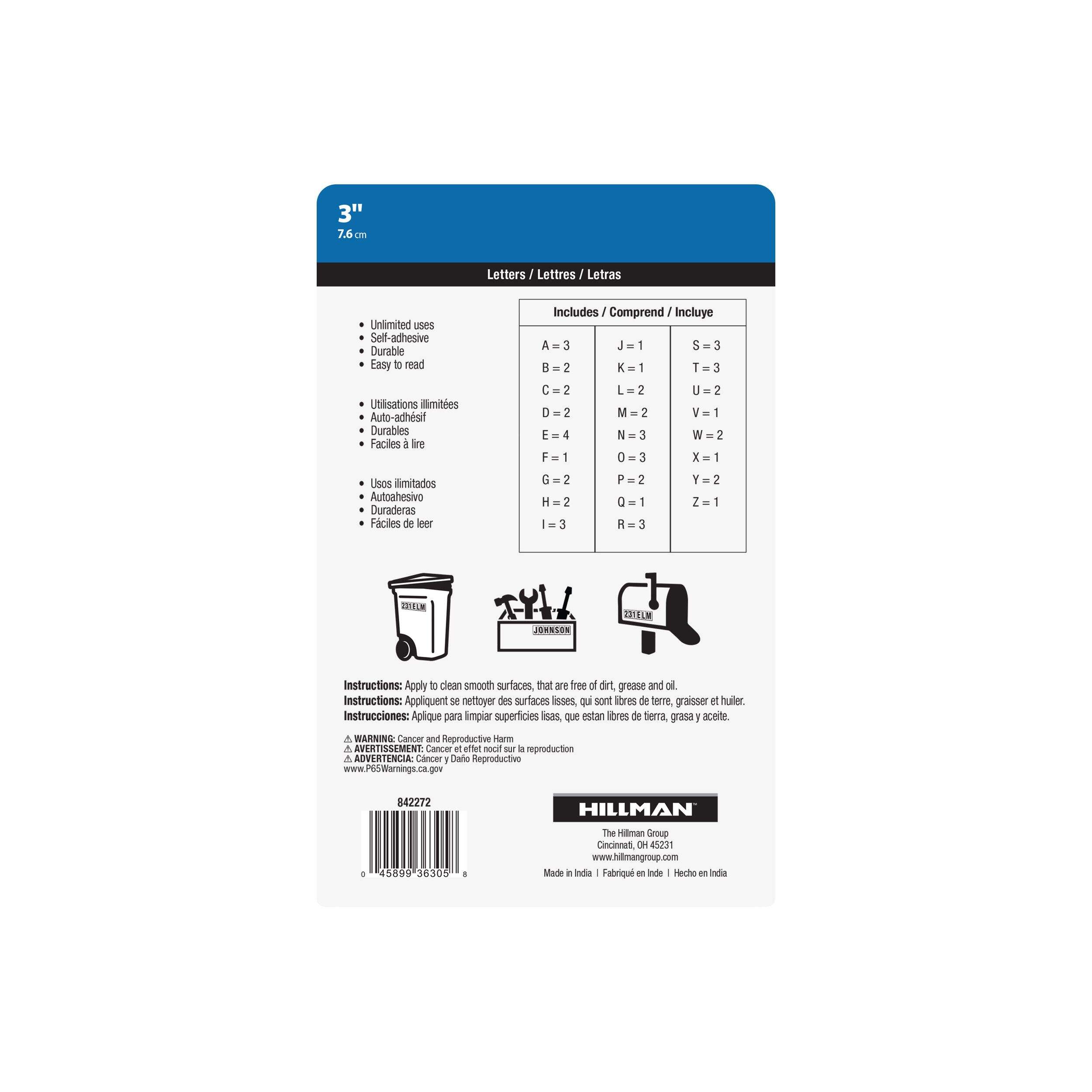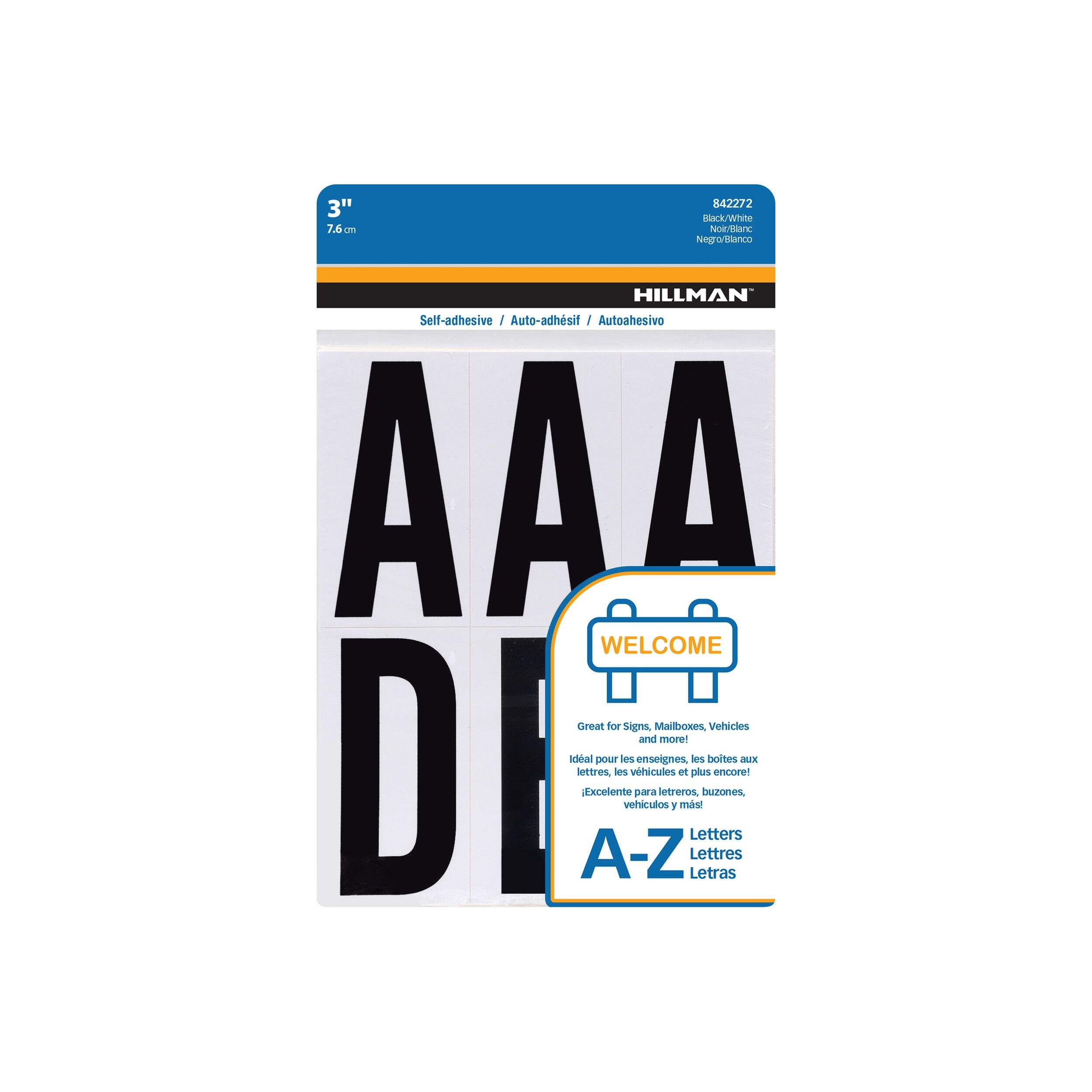 Simple et classique, ce pack de lettres adhésives Hillman noir et blanc (3 po) est parfait pour une utilisation sur une boîte aux lettres ou dans votre maison. La construction robuste résiste aux intempéries. Ces lettres sont un excellent moyen de rendre votre adresse plus visible pour les visiteurs et les secouristes.