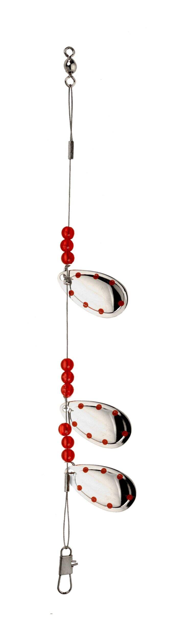 Le leurre Lucky Strike Baby Lake Troll attire la truite et le saumon en imitant un petit poisson d'appât. Il est doté de 3 lames en laiton estampé qui battent et tournent lorsqu'elles se déplacent dans l'eau, attirant les poissons affamés. Le fil en acier inoxydable testé à 35 livres assure que la traîne peut résister à beaucoup d'action, tandis que la longueur compacte de 8 po facilite le lancer. Offert en fini nickel ou cuivre à pois noirs, ce leurre miniature est costaud pour sa taille.
