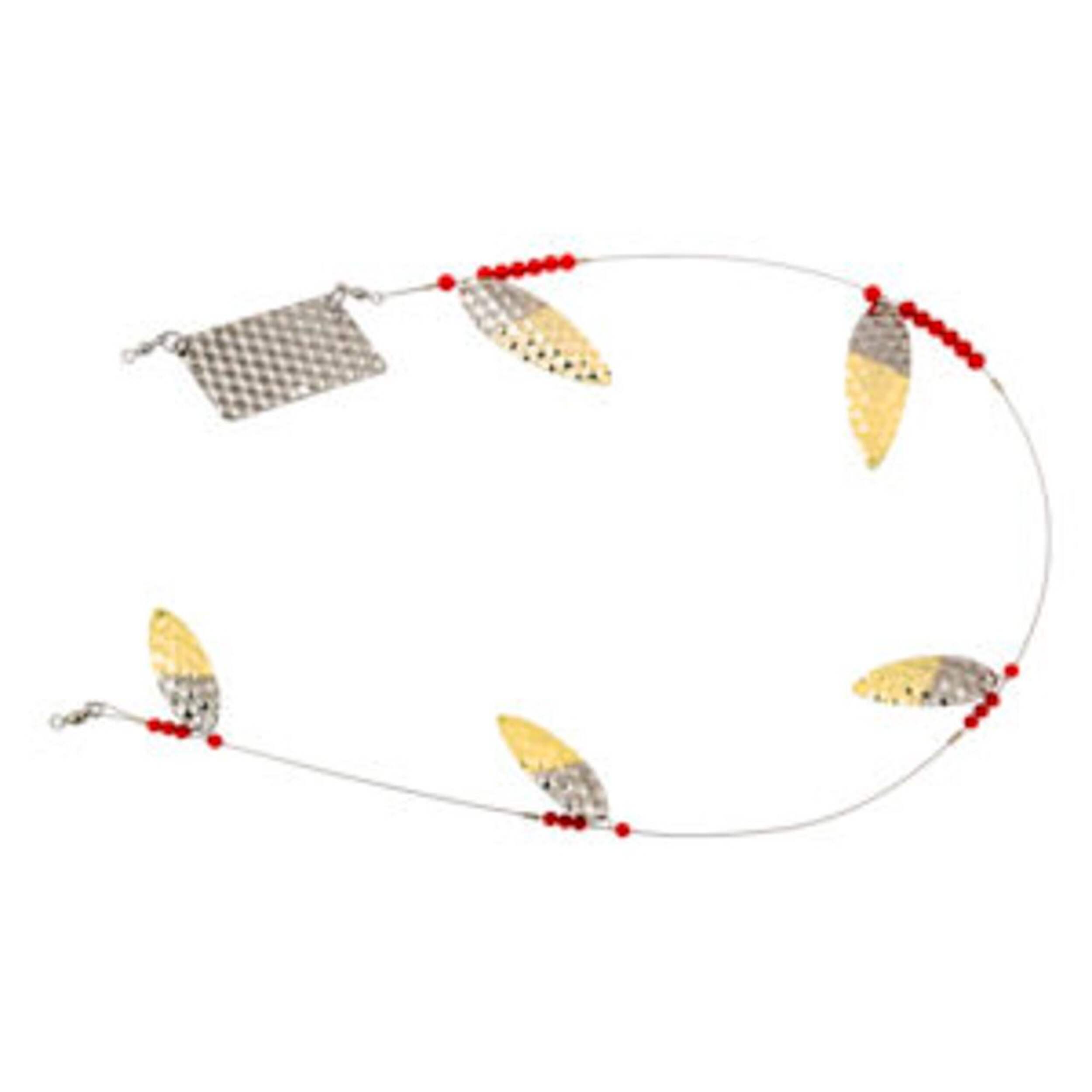 Ce leurre simule un banc de poissons appâts pour attirer la truite et le saumon grâce à ses lames en laiton martelé et son fil en acier inoxydable testé de 95 lb. Pour la pêche à la traîne sur un lac pour attraper les truites arc-en-ciel ou au lancer dans une rivière pour lutter contre le saumon, ce leurre Lucky Strike Gang Troll piège les poissons affamés en imitant un appât.