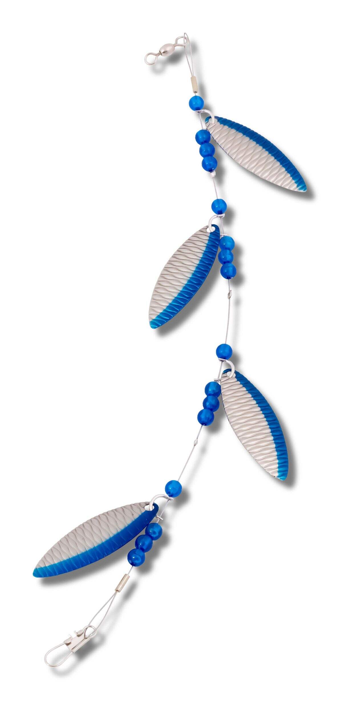 Le leurre Lucky Strike Super Baby Lake Troll permet de pêcher de gros poissons facilement. Ce leurre pour la pêche à la traîne imite un petit banc de poissons d'appât, attirant l'achigan, le doré, la truite et le saumon grâce à ses 4 lames en laiton estampé et sa couleur bleu chartreuse ou nickel martelé. Le fil en acier inoxydable 35 livres permet aux pêcheurs de couvrir beaucoup d'eau tout en conservant une prise ferme sur ce leurre de 12 po, idéal pour remonter de belles prises lors de votre prochaine partie de pêche.