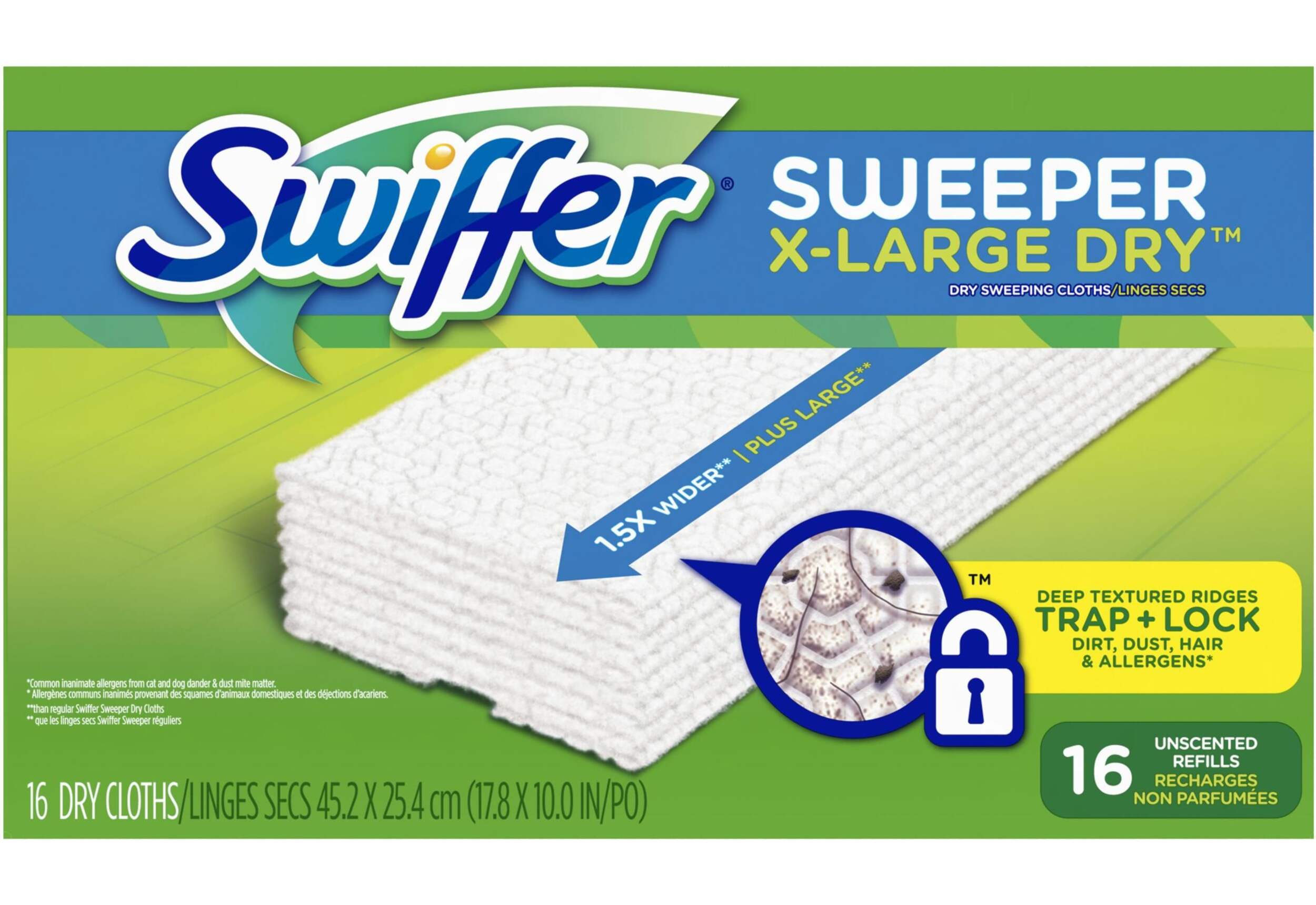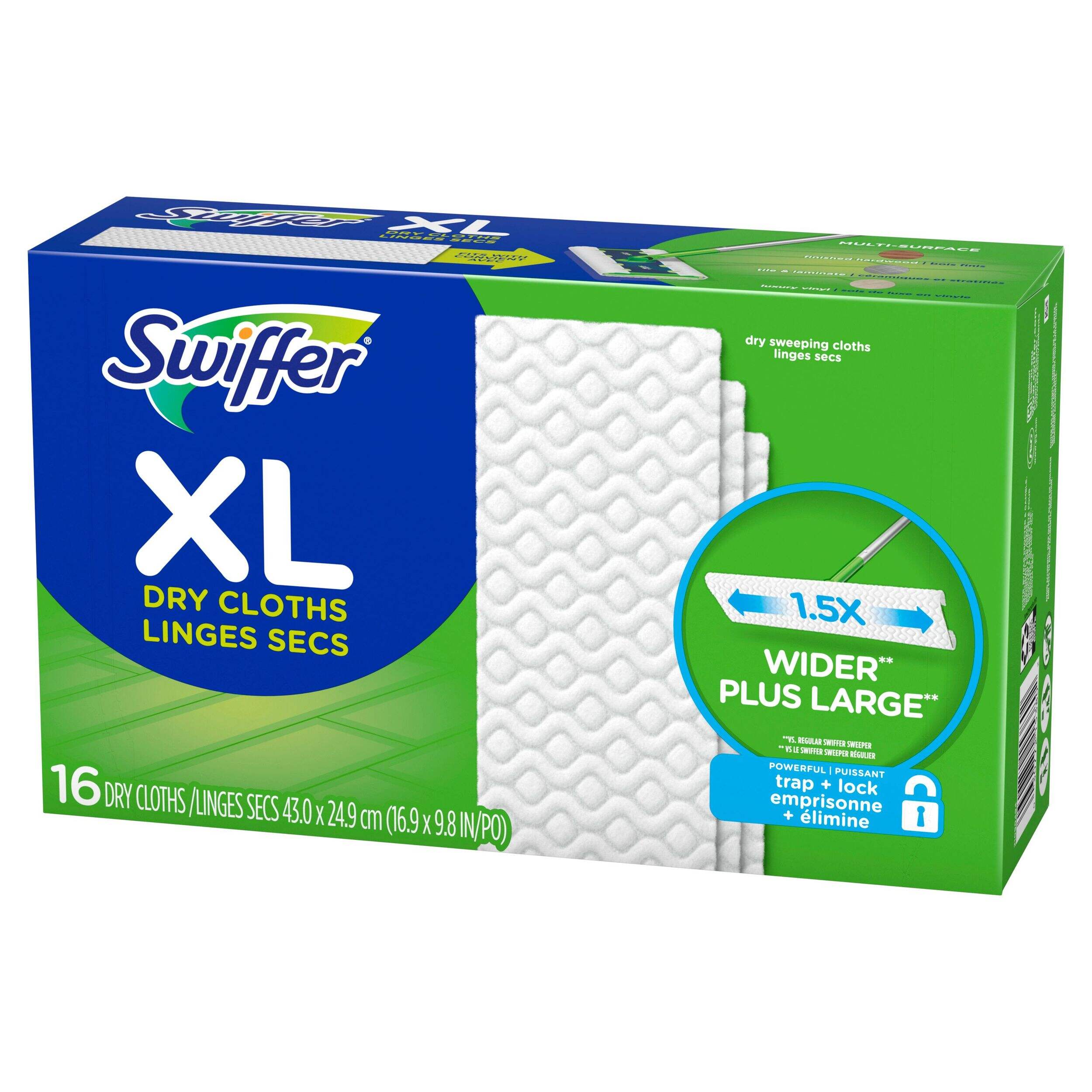 Linges secs Swiffer Sweeper XL, 1,5 fois plus larges que les linges Swiffer Sweeper ordinaires, ramassent encore plus de saleté, de poussière et de poils en un seul coup