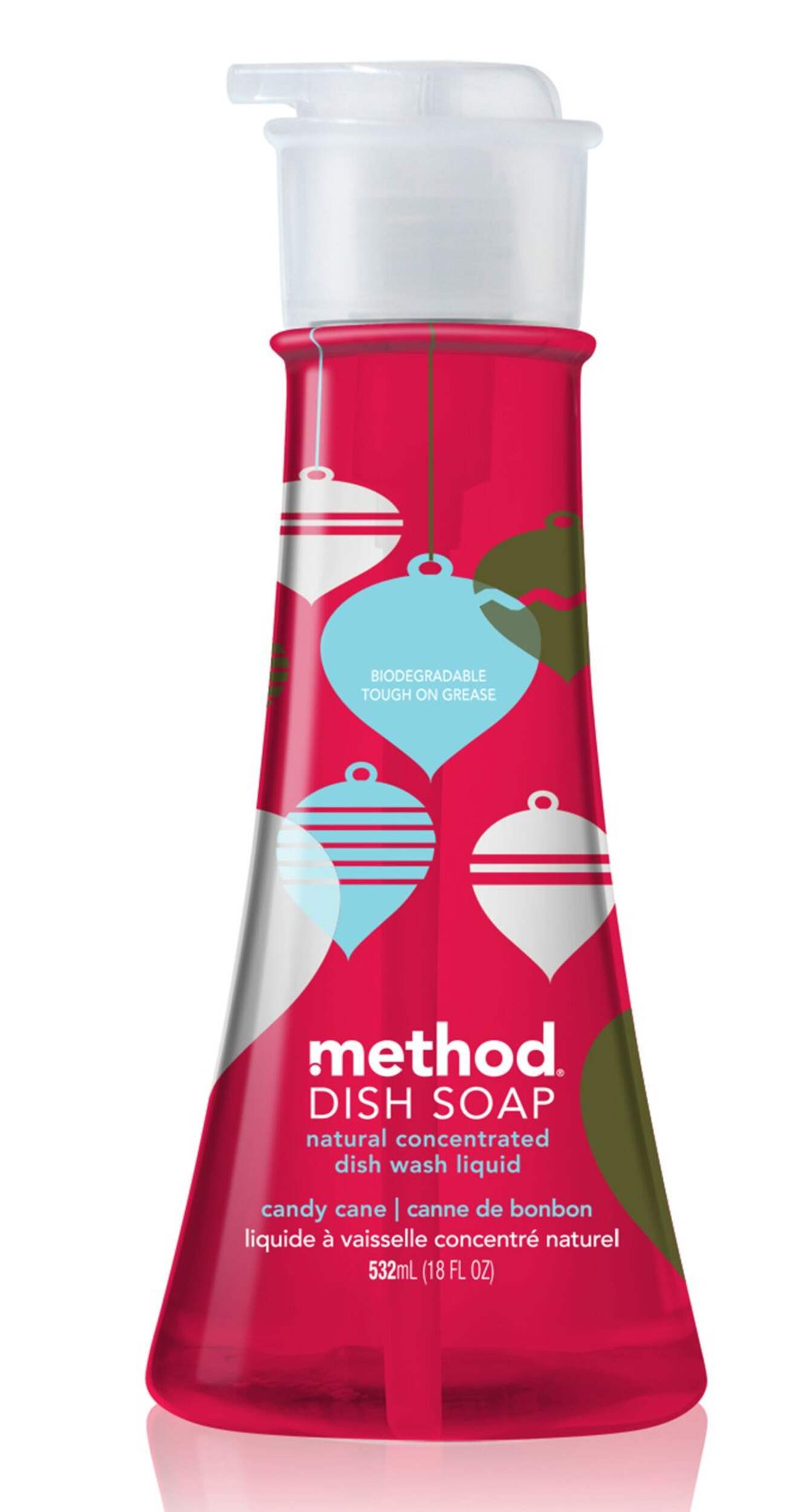 Liquide à vaisselle avec pompe method, canne de bonbon, à formule naturelle venant à bout de la graisse et des taches