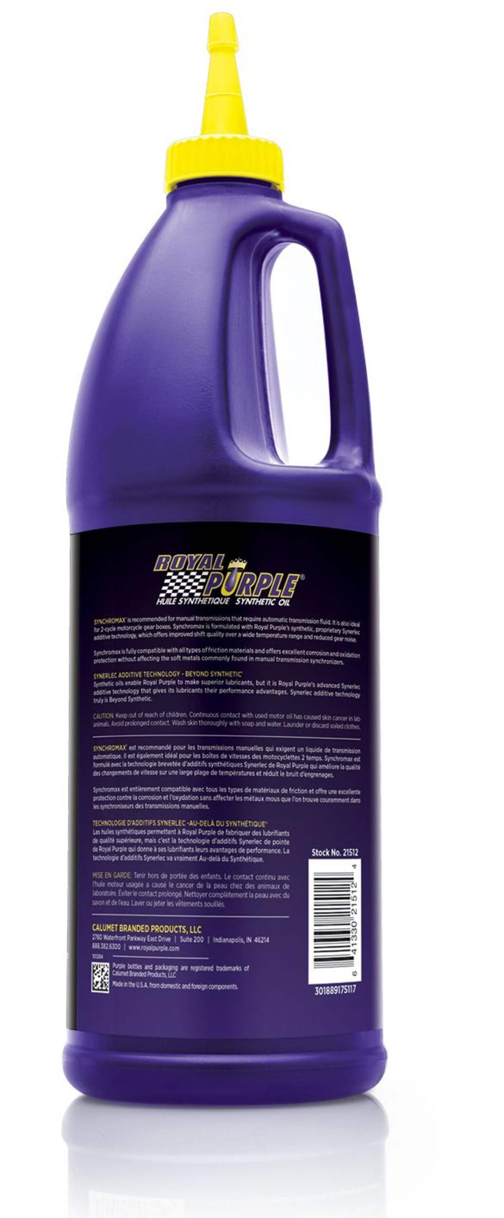 Huile de transmission Royal Purple Synchromax pour les boîtes de vitesses manuelles qui demandent un liquide de boîte automatique ou une autre huile à faible viscosité