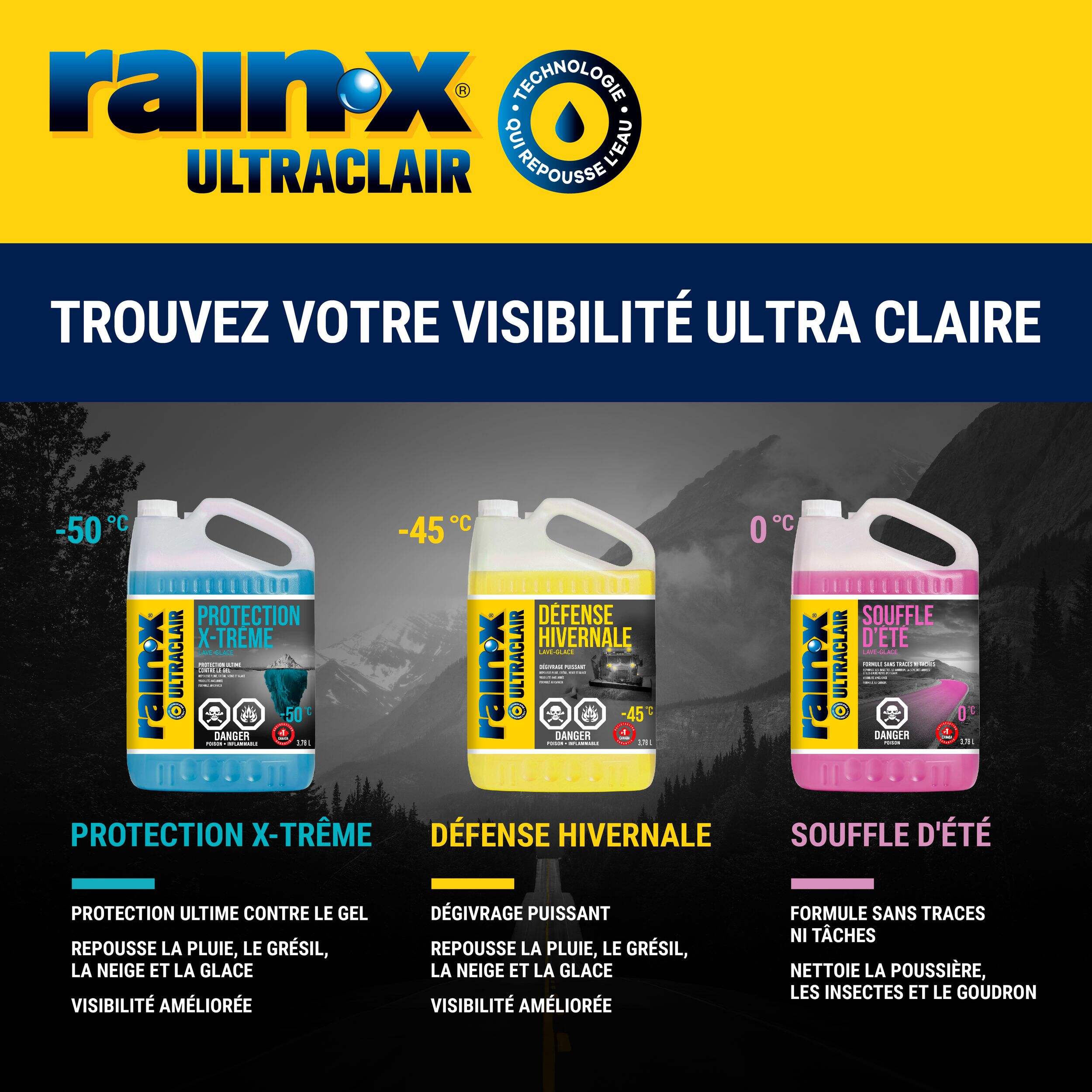 Mieux que jamais, notre nouveau et amélioré Rain-X ClearView X-Treme protection offre la meilleure protection contre les points de congélation et repousse la pluie, le grésil, la neige et la glace jusqu'à -50 °C. Le 1 liquide de lave-glace le plus vendu au Canada avec technologie hydrofuge* améliore la visibilité sur la route par temps humide. Voyez clairement et sentez-vous plus en sécurité sur la route, peu importe les conditions météorologiques.