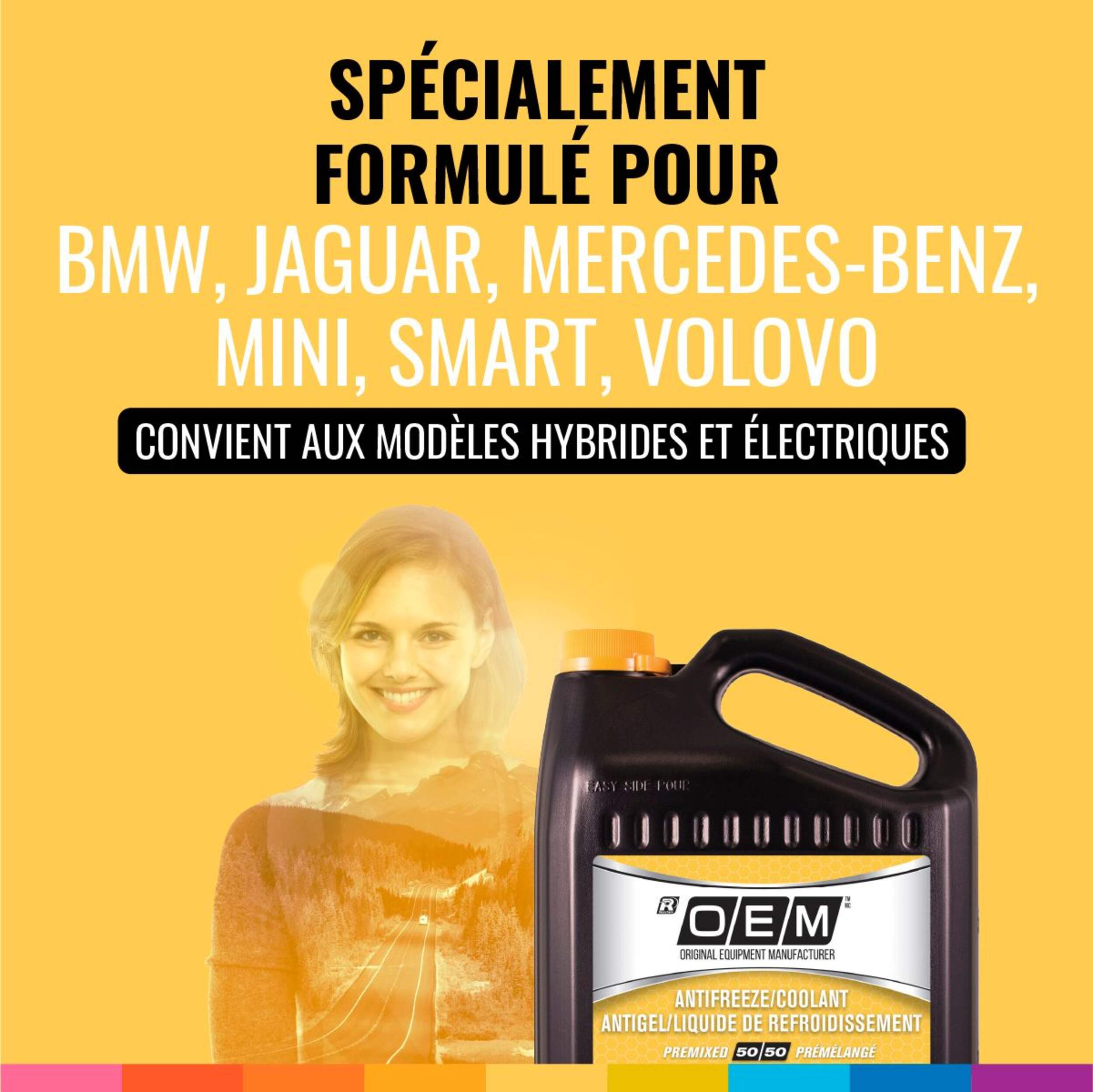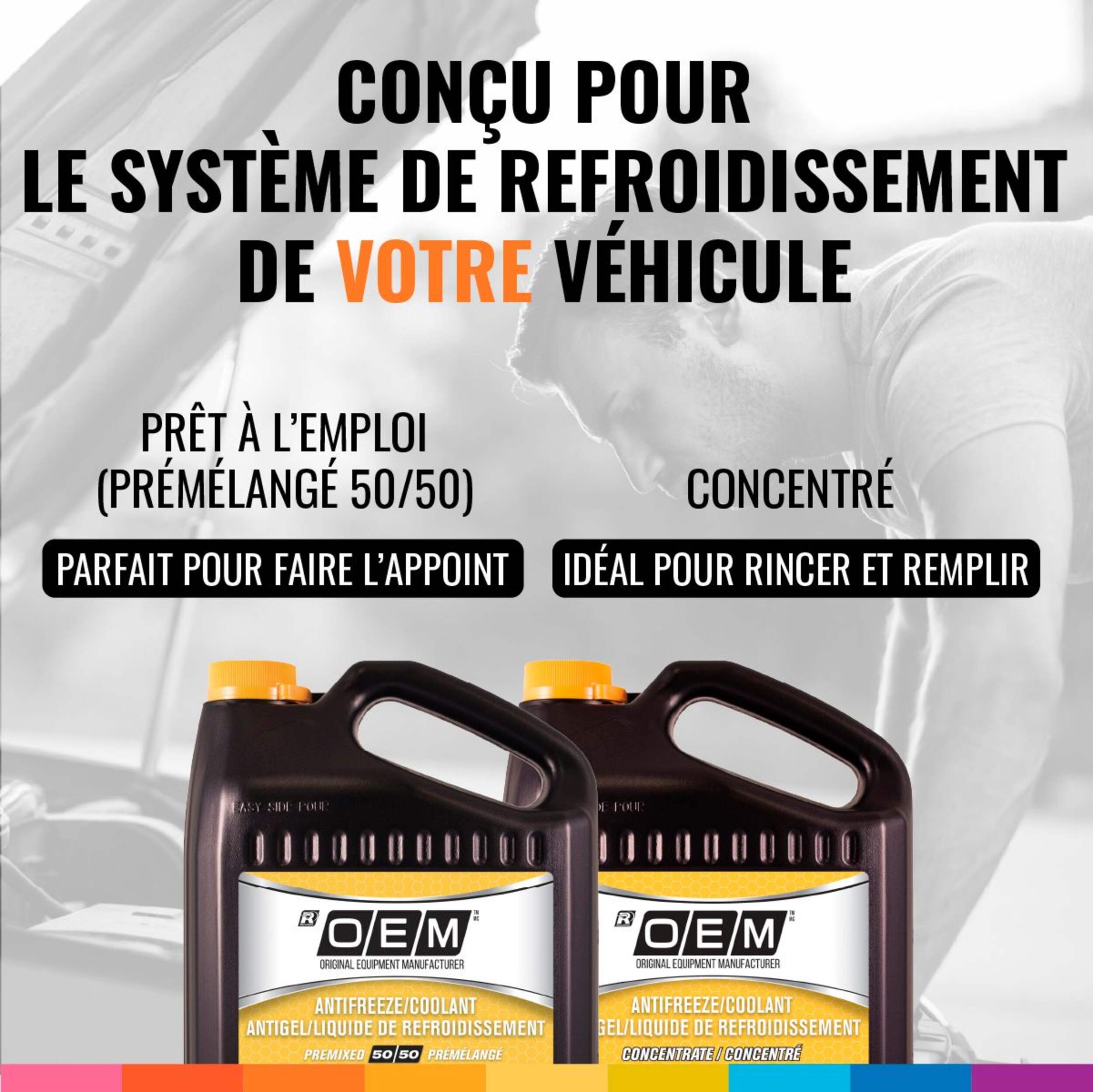 Le liquide antigel OEM - Le bon choix pour votre véhiculeNous sommes Matchmakers. Comprend OEM, vous aimez votre véhicule. OEM est dédié à vous correspondant à l'antigel droite / liquide de refroidissement pour votre véhicule. Votre match de couleur indique la bonne formule pour votre véhicule, protège le moteur contre les températures extrêmes, commencer après le démarrage. Faites confiance aux experts OEM.