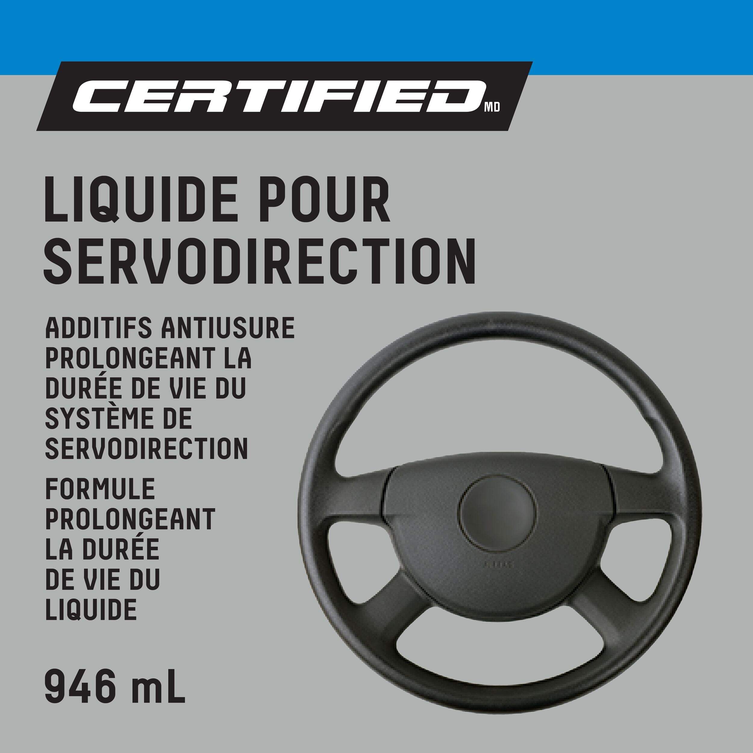 Le liquide de servodirection Certified est conçu pour assurer le bon fonctionnement et l'efficacité de vos systèmes de servodirection. Ce liquide de direction protège contre les crissements et les pannes de pompe tout en prolongeant la durée de vie des systèmes de direction avec des additifs et lubrifiants anti-usure. Pour plus de commodité, le liquide de servodirection Certified est compatible avec plusieurs marques de véhicules et est offert en divers formats.