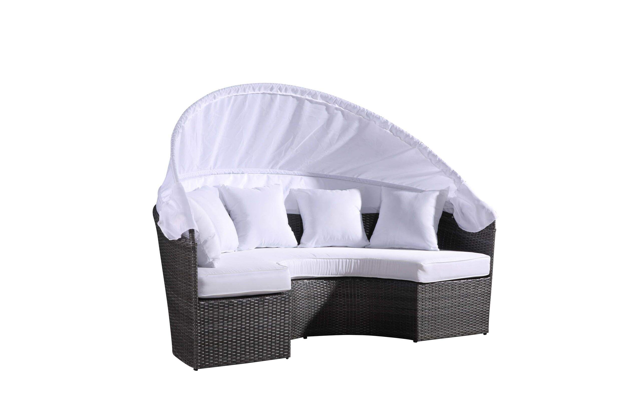 Profitez dd'un temps de repos à l'extérieur avec le lit de repos en osier résistant aux intempéries Velago Sogno avec auvent rétractable