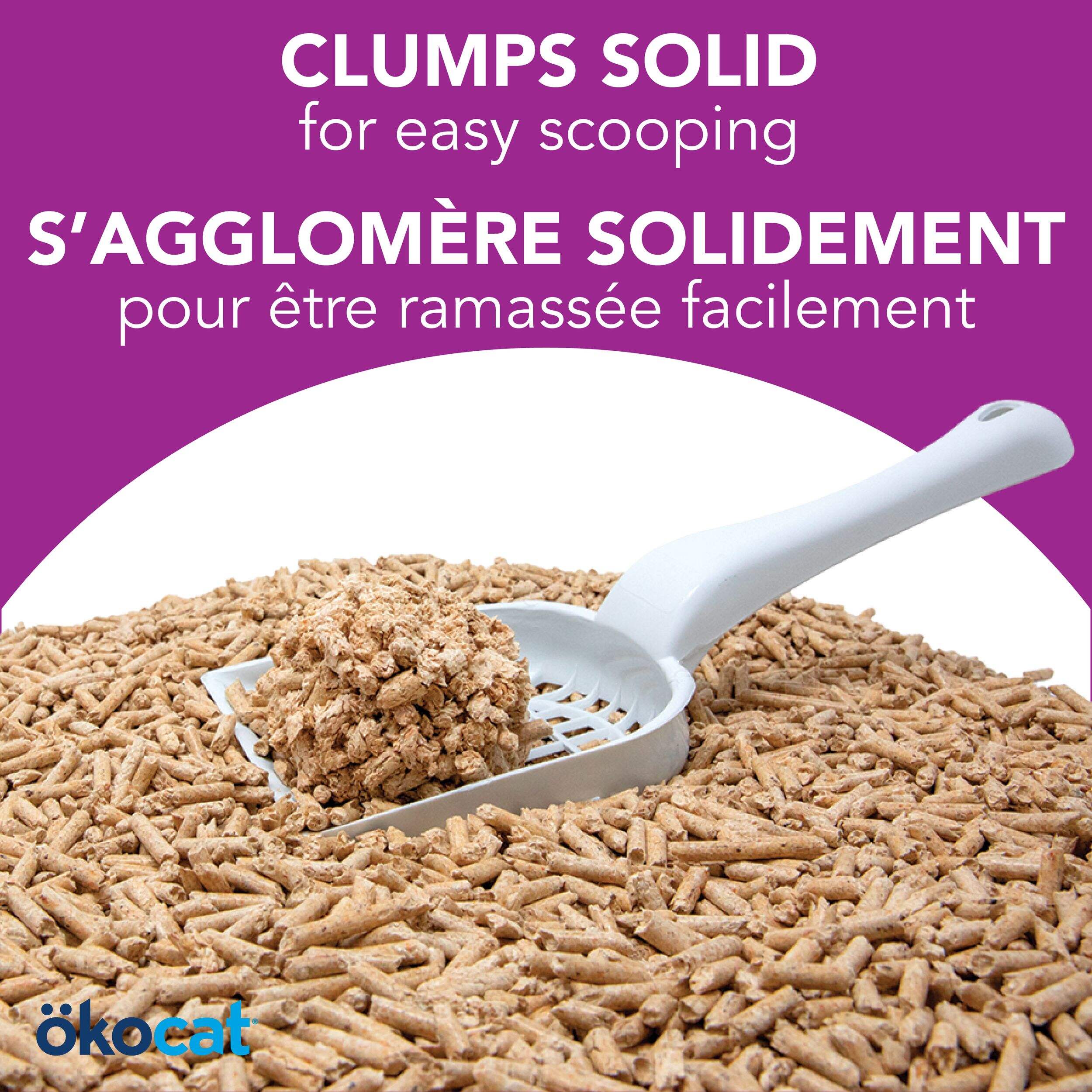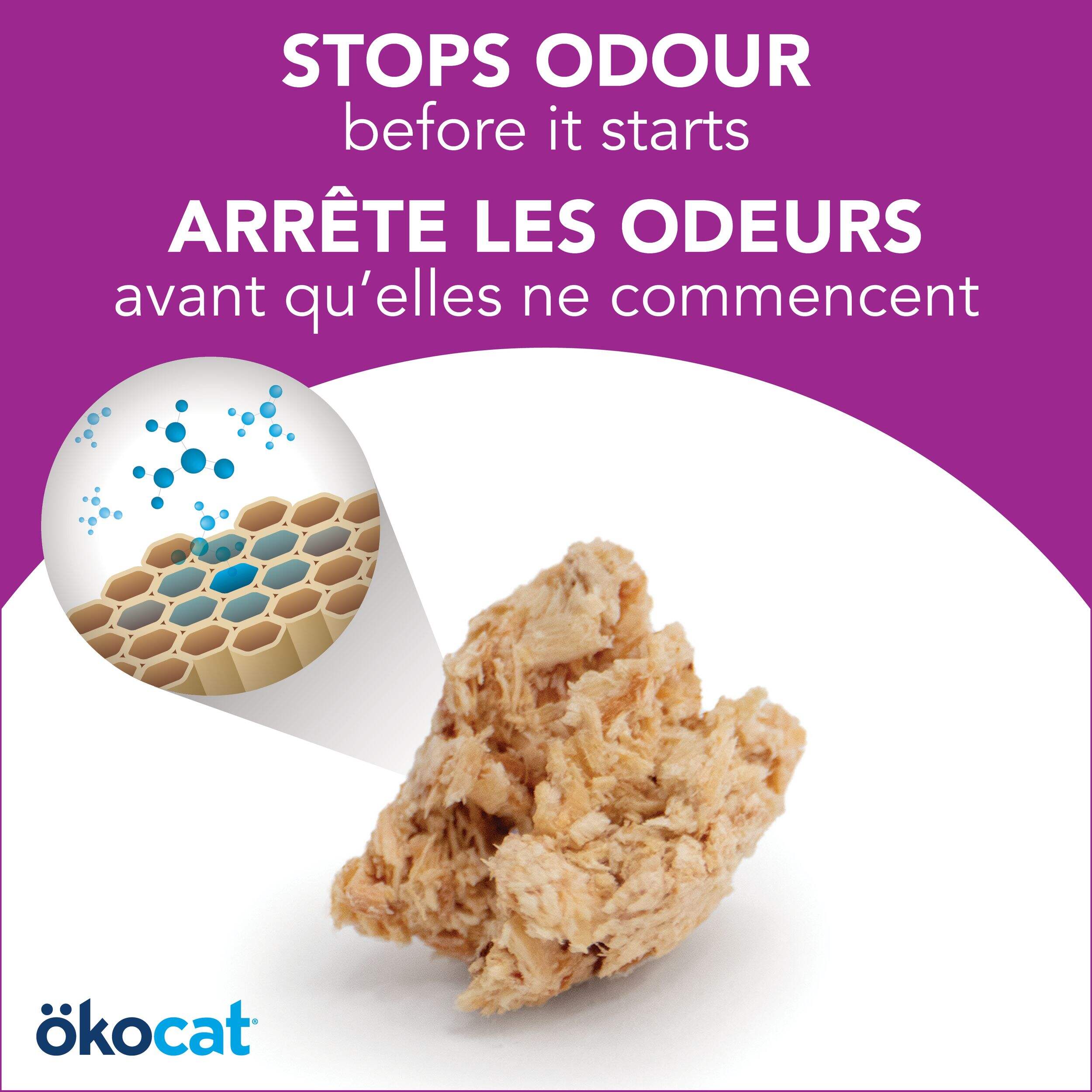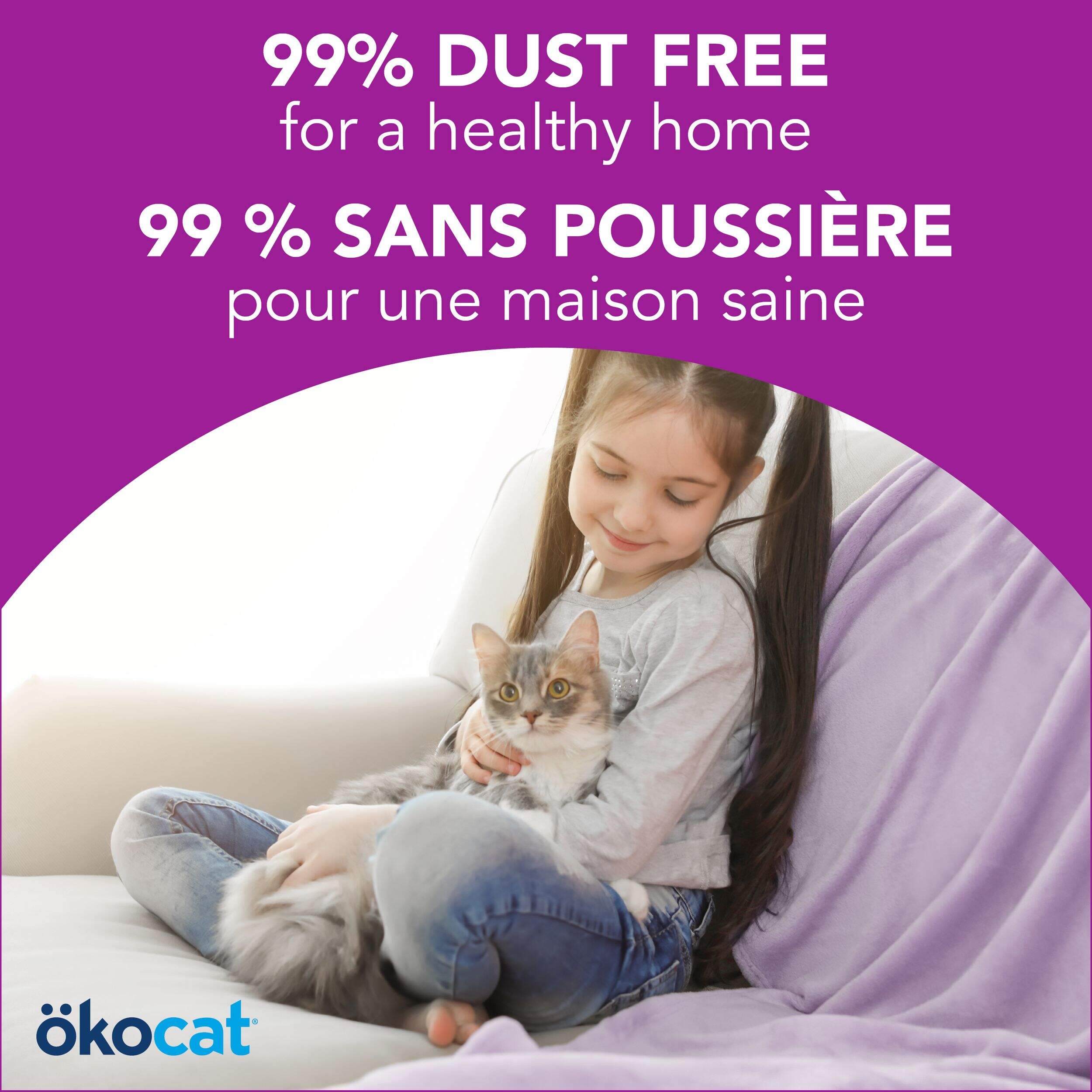 Litière agglomérante Okocat laissant peu de traces qui se compose de mini-granules douces faciles à nettoyer ne collant pas à la fourrure de votre chat ou ne s'éparpillant pas dans la maison