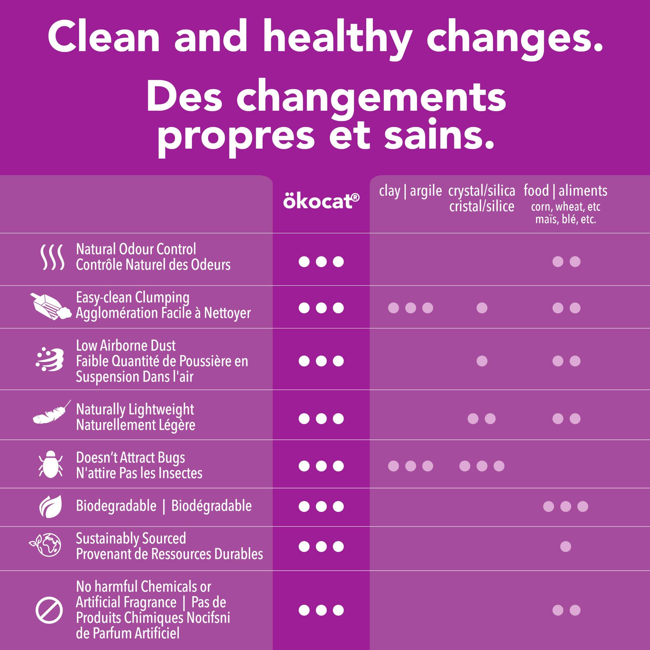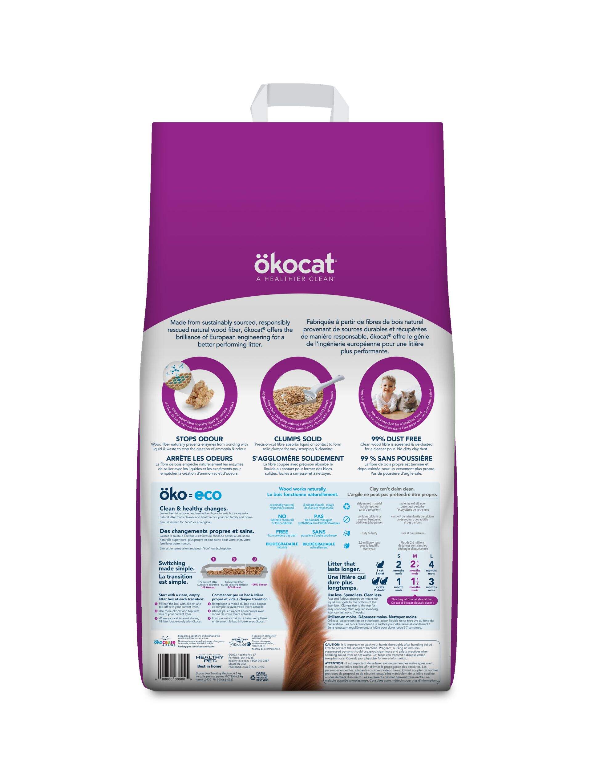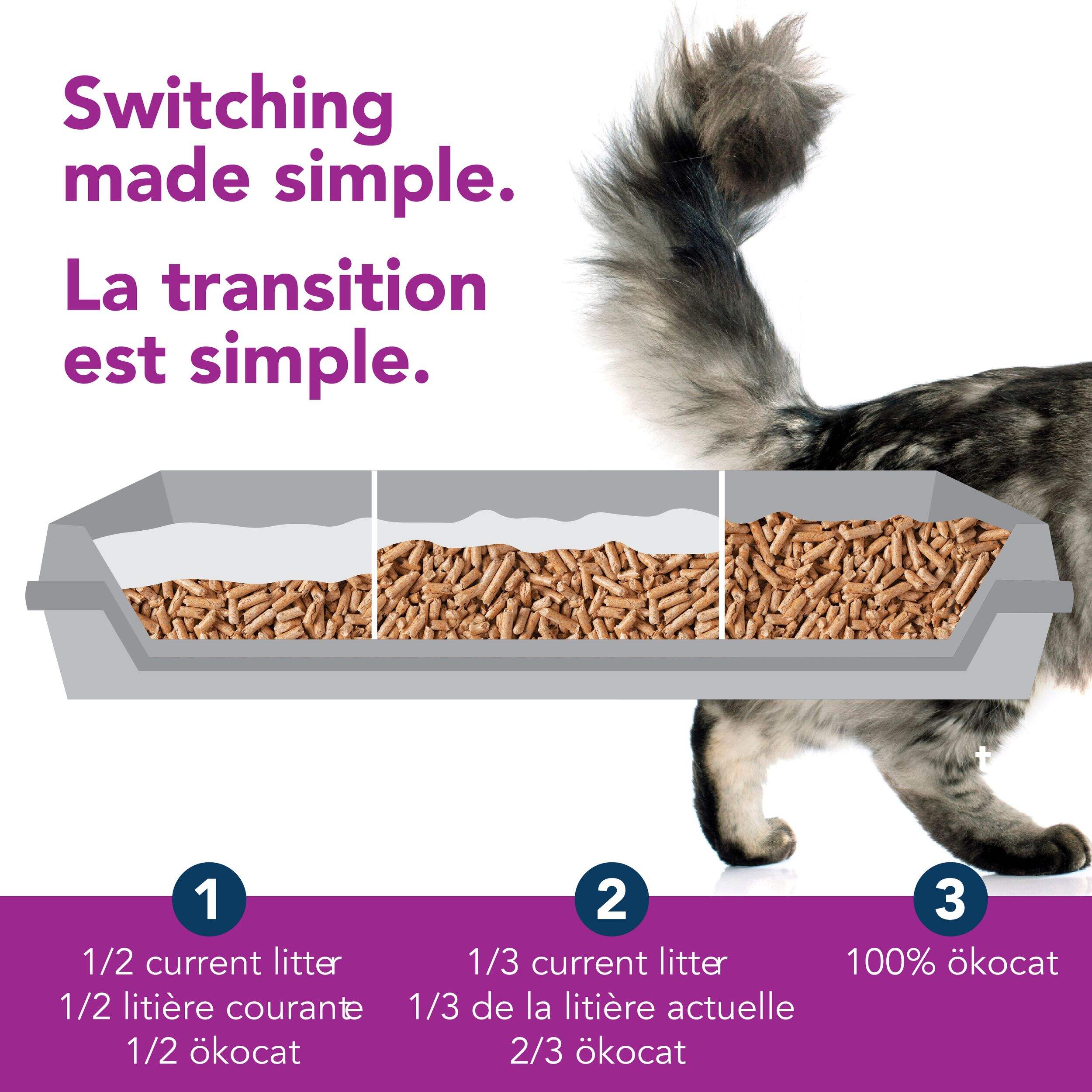 Litière agglomérante Okocat laissant peu de traces qui se compose de mini-granules douces faciles à nettoyer ne collant pas à la fourrure de votre chat ou ne s'éparpillant pas dans la maison
