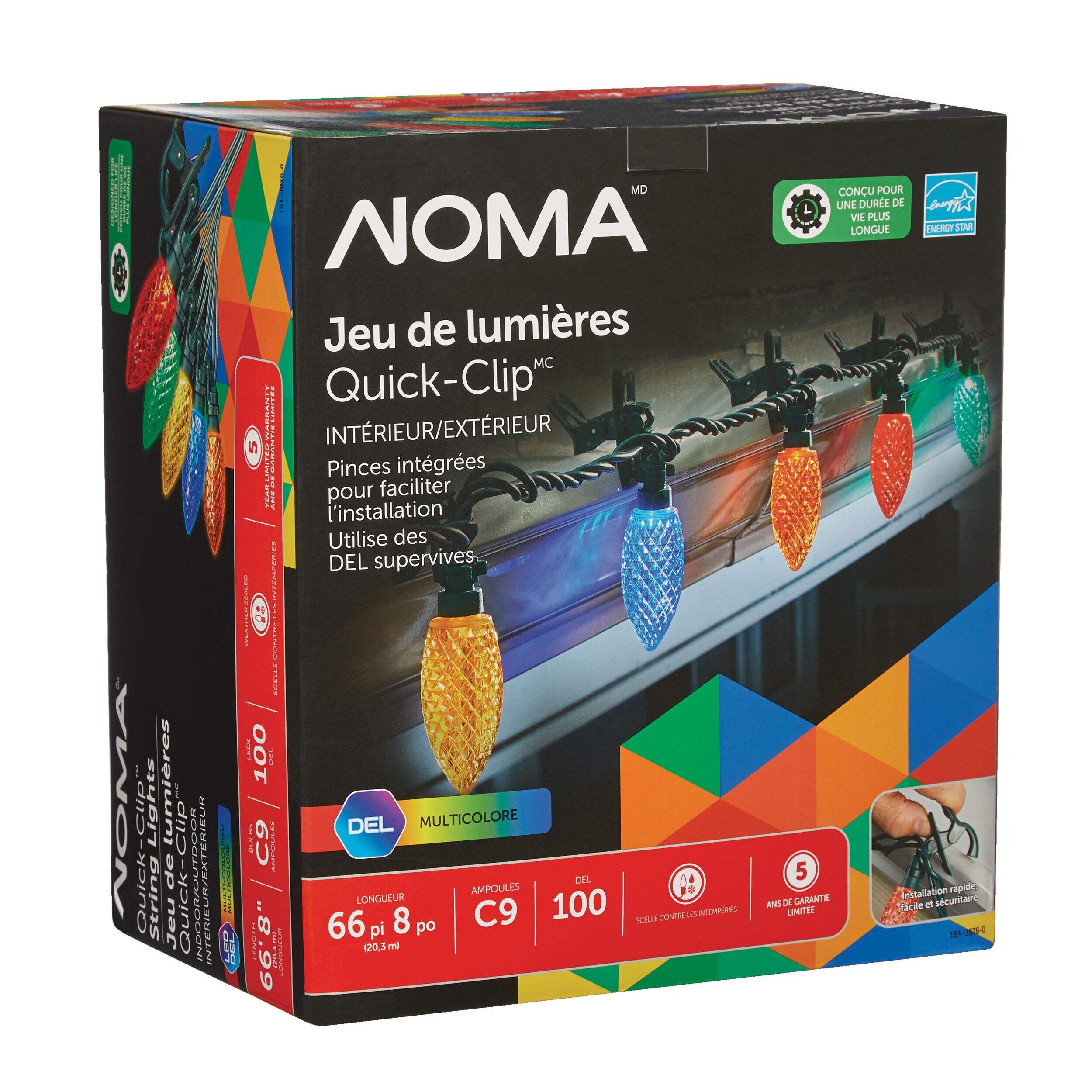 Décorez pour les Fêtes en toute tranquillité avec les 100 lumières à DEL C9 à fixation rapide NOMA. Leur technologie brevetée à fixation rapide permet une installation facile sur les gouttières, les sapins et les balustrades. Les pinces rotatifs à 180 degrés fournissent un éclairage ciblé, tandis que le modèle résistant aux intempéries garantit la durabilité. Dotées de 100 ampoules à DEL multicolores écoénergétiques et froides au toucher, ces lumières offrent une luminosité festive et une connectivité de bout en bout pour une utilisation polyvalente.