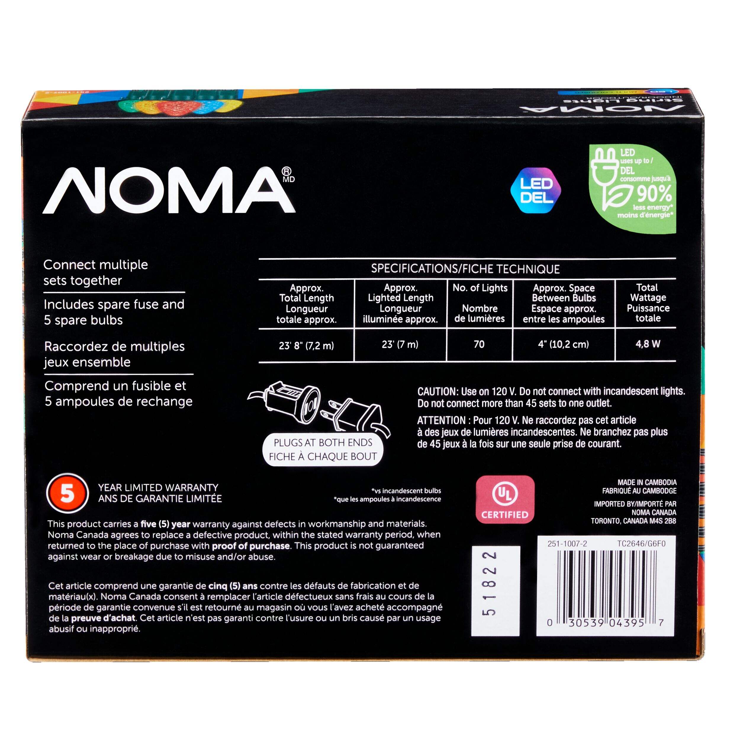 Ajoutez à votre maison une touche festive moderne avec ces 70 lumières à DEL d'extérieur NOMA C6 écoénergétiques. Ces ampoules à DEL multicolores peuvent illuminer l'intérieur et l'extérieur, ce qui vous permet de décorer vos arbres, fenêtres, clôtures, allées et toits avec une touche festive. Et ce n'est pas tout : vous pouvez connecter jusqu'à 45 jeux de lumières qui vous permettront de créer un décor lumineux impressionnant qui fera briller l'ensemble toute votre propriété. Contrairement aux anciennes ampoules incandescentes qui consomment beaucoup d'énergie, ces lumières à DEL émettent des couleurs vives et lumineuses en consommant peu d'énergie, pour une saison des Fêtes plus respectueuse de l'environnement. N'hésitez donc pas à répandre la magie des Fêtes, de votre jardin jusqu'au toit, ces lumières sont prêtes à illuminer le moindre recoin.
