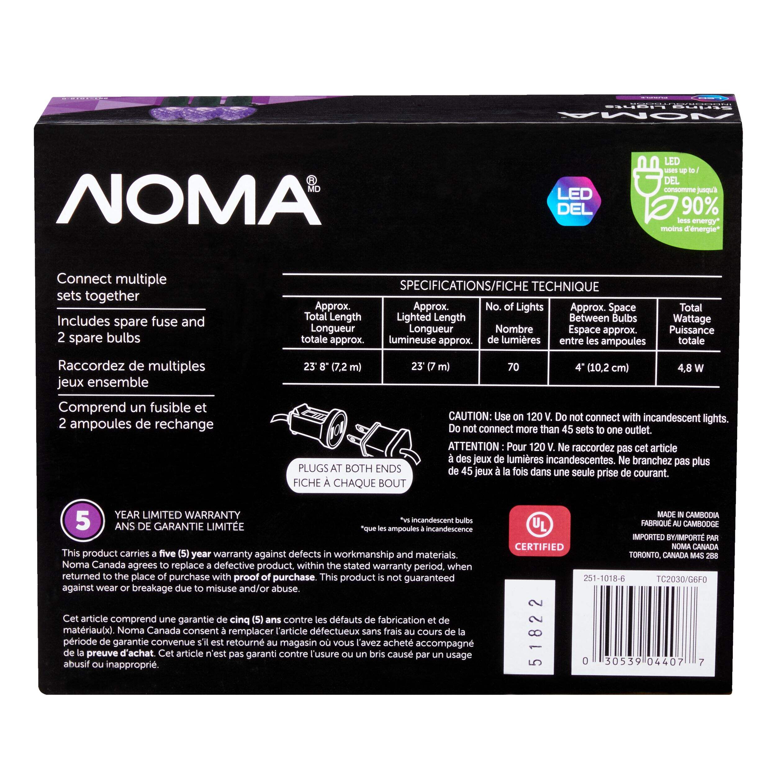 Les 70 lumières à DEL d'extérieur C6 NOMA sont un excellent moyen d'illuminer votre maison ou votre cour pendant les Fêtes. Lumières à DEL C6 comprenant 70 ampoules à DEL écoénergétiques conçues pour l'intérieur ou l'extérieur, ce qui vous permet d'éclairer facilement vos arbres, fenêtres, clôtures, allées ou toit.
