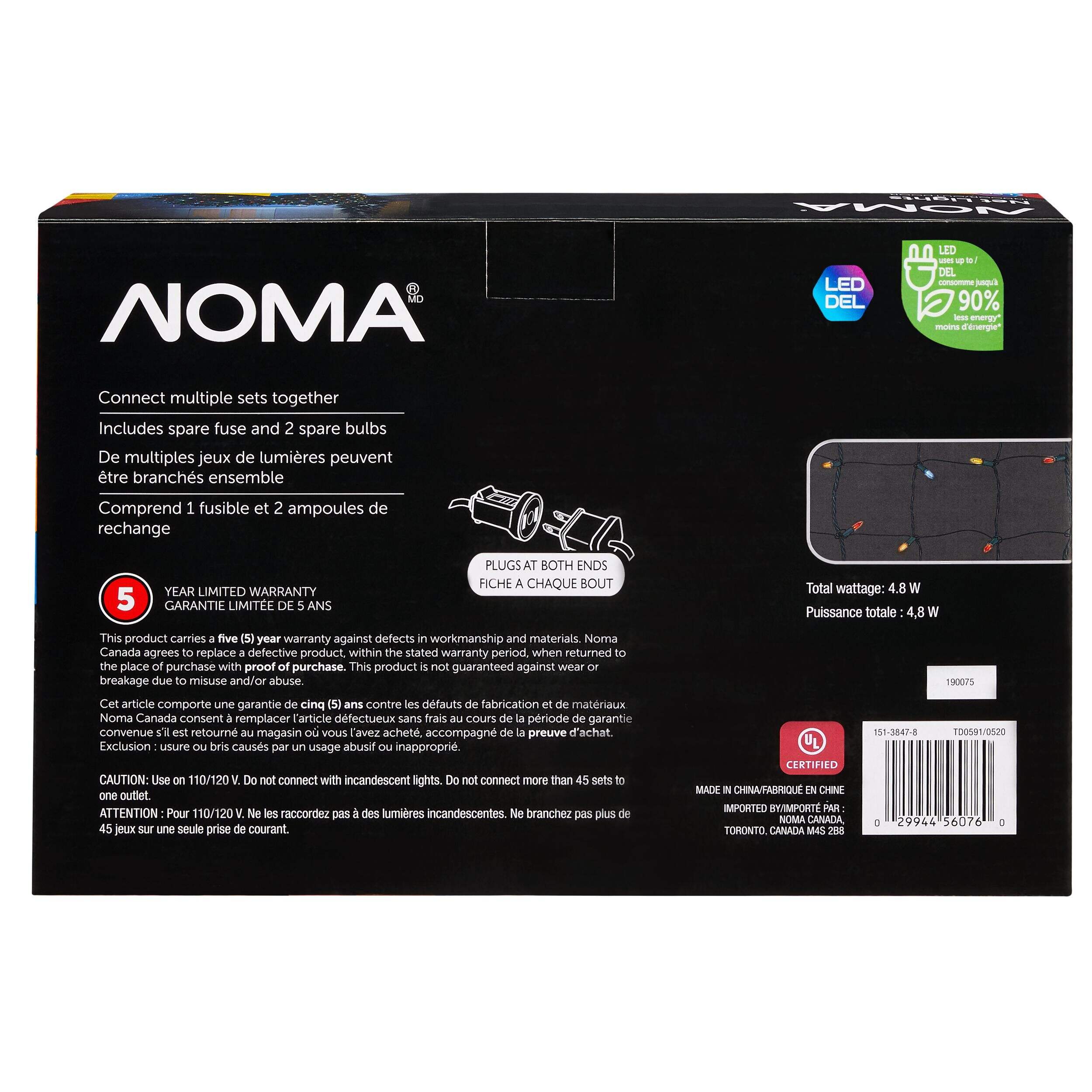 Créez un décor spectaculaire des Fêtes à la maison avec ce filet de 100 lumières à DEL NOMA. Le filet est recouvert de 100 lumières multicolores pour couvrir facilement les buissons et les arbustes dans un décor des Fêtes éclatant. Facile à installer et à brancher à des jeux supplémentaires pour obtenir une meilleure couverture, ce filet de lumières est le moyen le plus facile et rapide de maximiser l'impact de l'éclairage des Fêtes autour de votre maison.