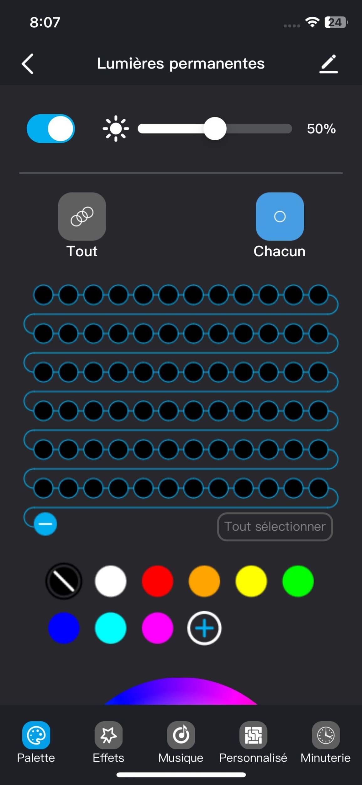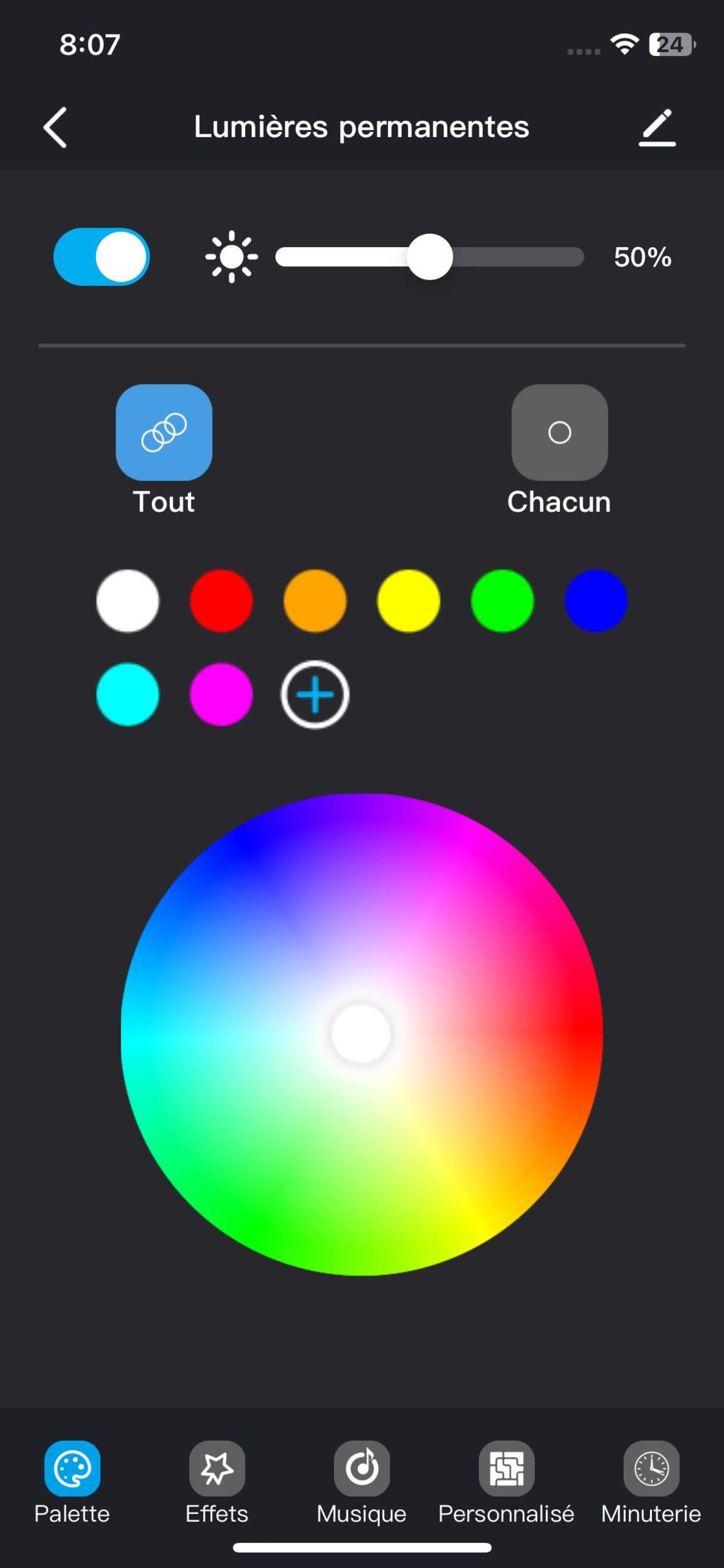 • Comprend 2 méthodes de contrôle, application Wi-Fi et commande vocale, pour régler la luminosité et la vitesse, et choisir différentes couleurs et différents effets lumineux