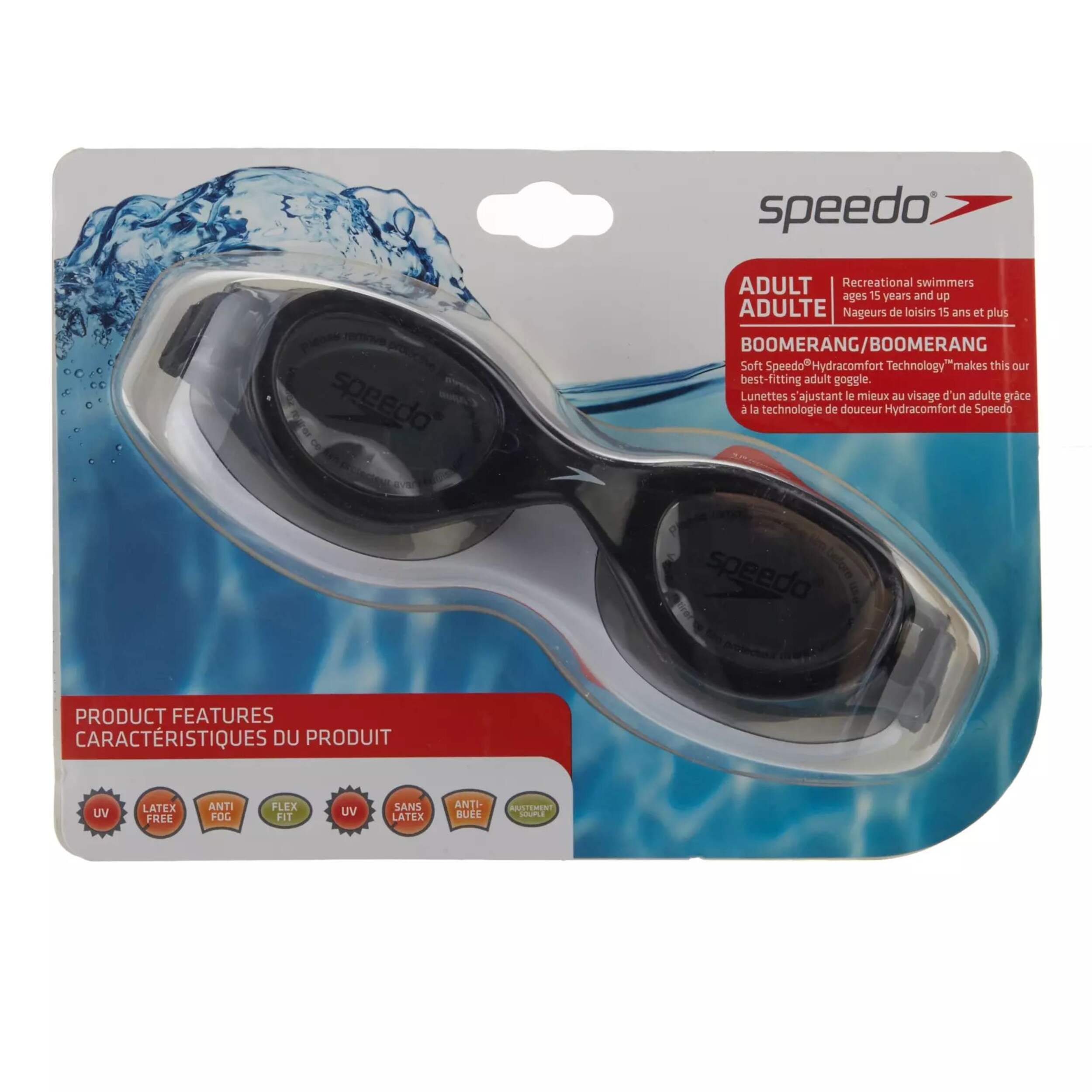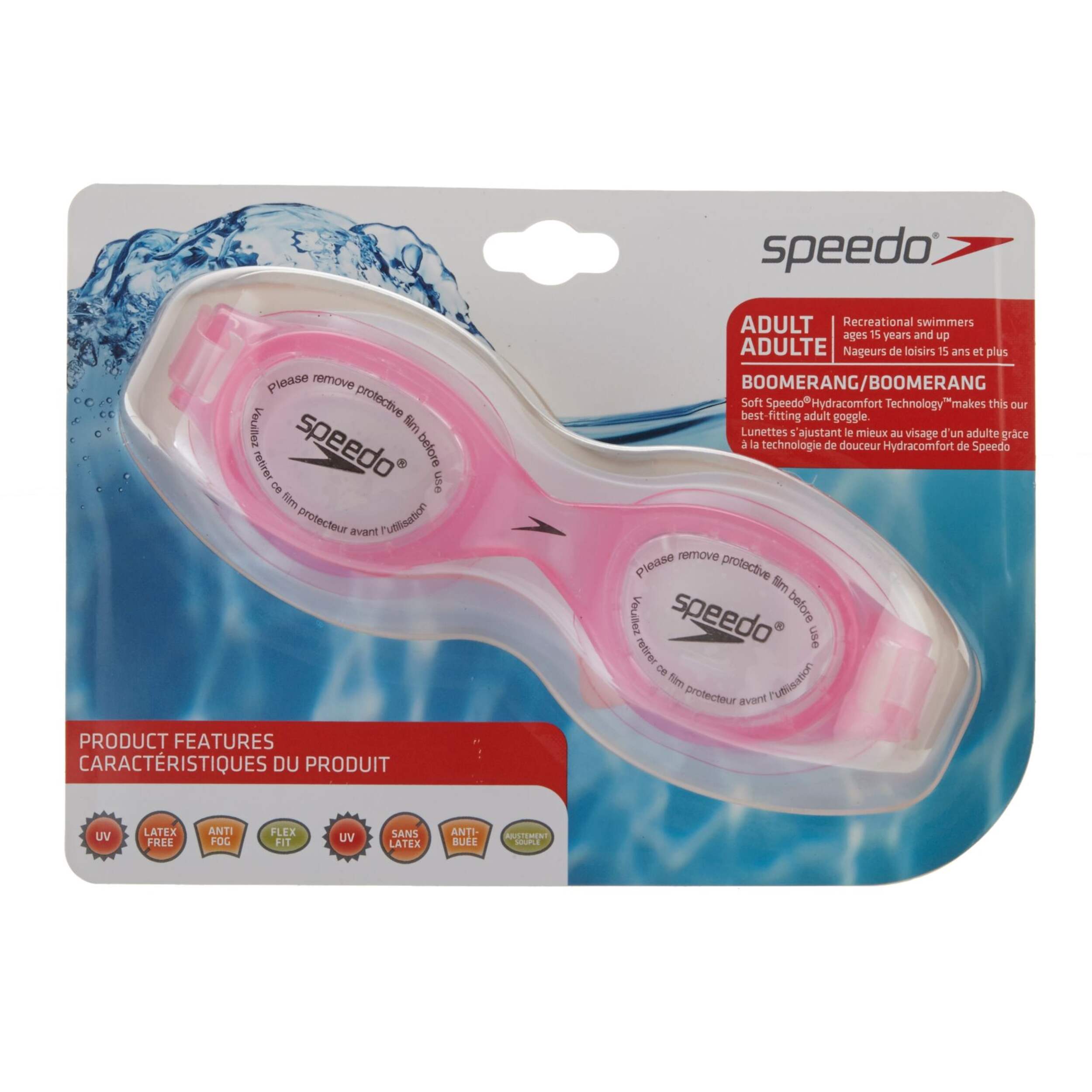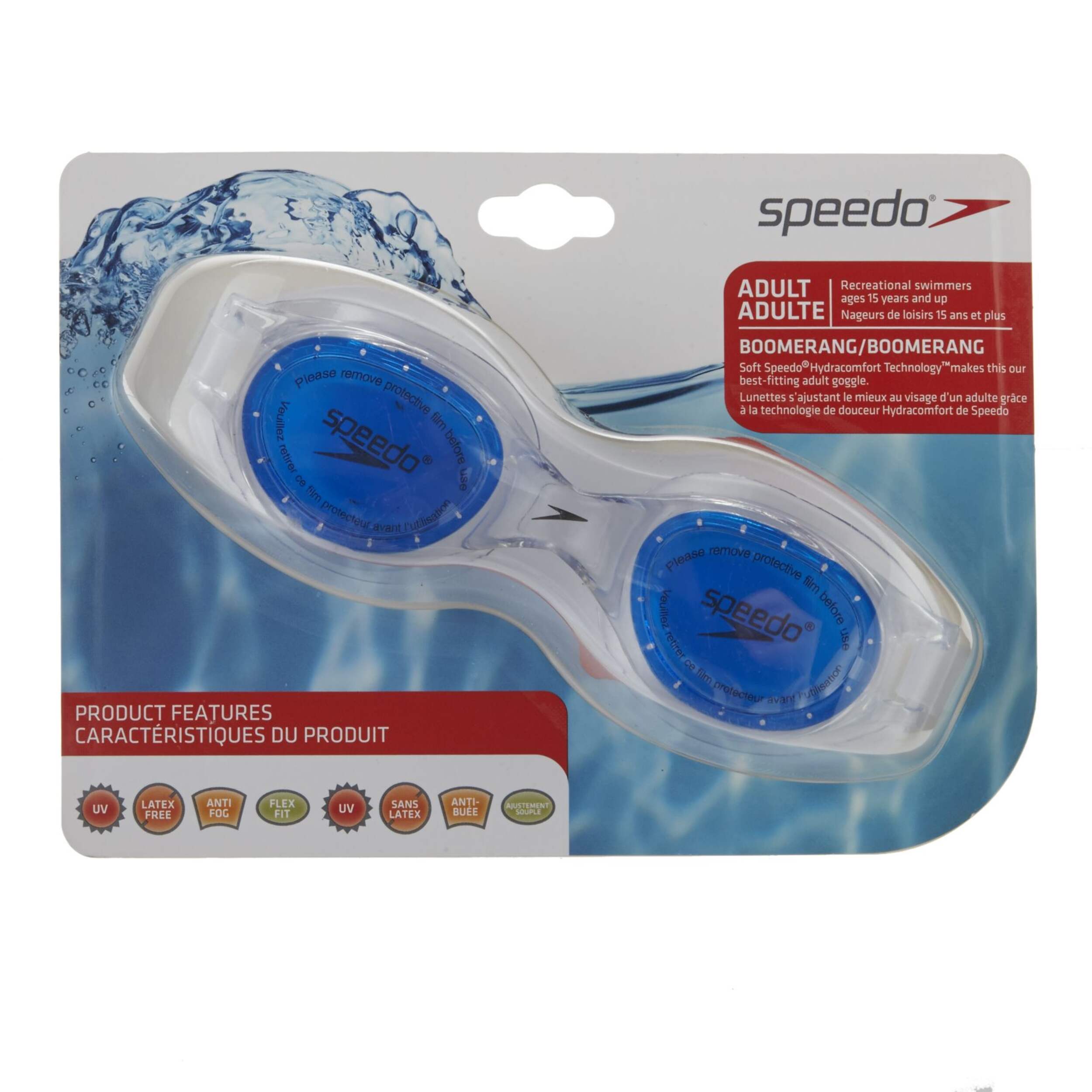 Rehaussez votre confort grâce à l'ajustement extérieur. Reconnues pour leur sécurité et leur fiabilité, les lunettes Speedo procurent un ajustement universel autour de l'orbite grâce à la forme de leurs joints. Monture souple monopièce. Sans latex. Protection anti-UV et antibuée.
