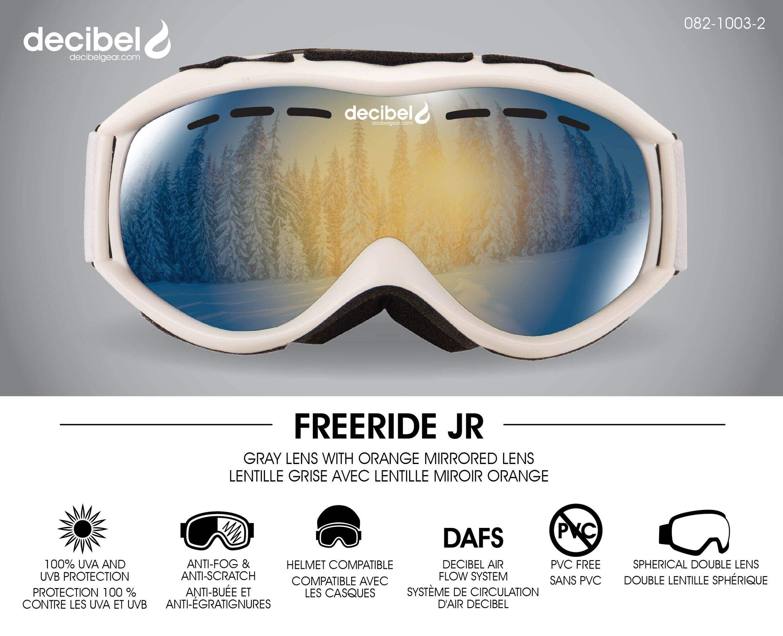 Les lunettes de ski et de planche à neige Decibel Freeride pour enfants sont parfaites pour les jeunes, assurant un plaisir enneigé sur les pentes. Conçues avec des verres antibuée, ces lunettes gardent votre vision claire, tandis que le revêtement antirayure assure une longue durée de vie. Offrant une protection 100 % contre les rayons UVA et UVB, ils protègent les yeux de votre enfant des rayons nocifs. Légères et confortables, ces lunettes sont le choix idéal pour toutes les aventures enneigées.