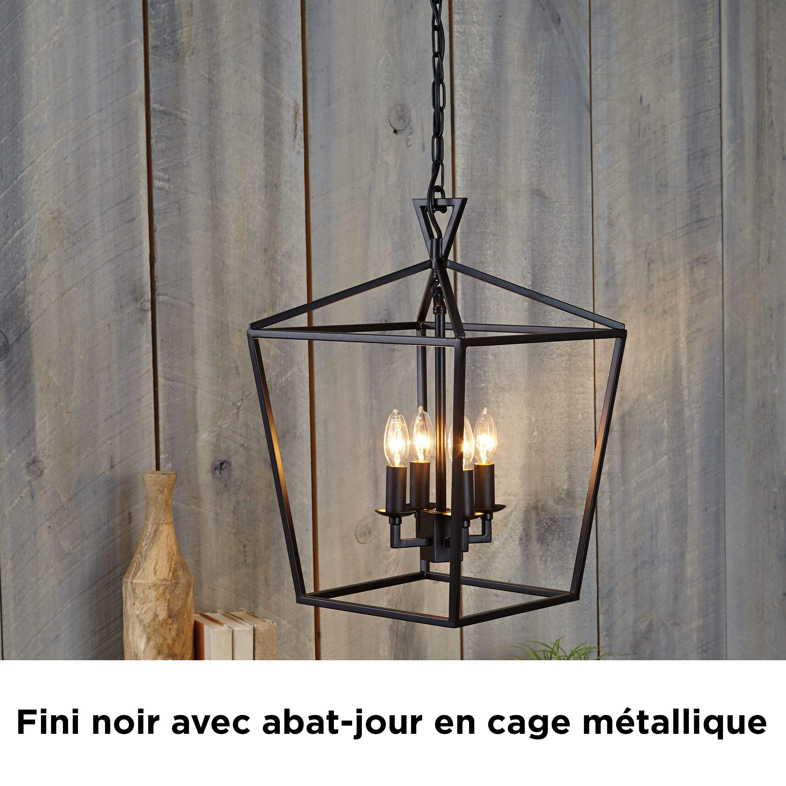 Avec une élégance intemporelle qui rehaussera instantanément n'importe quel espace de vie, le lustre CANVAS Holden est doté de 4 bras, chacun doté d'une ampoule de 60 W. Lustre attrayant et pratique offrant une lueur chaleureuse qui rendra n'importe quel espace plus agréable tout en offrant amplement de lumière pour cuisiner, manger ou recevoir. Fini noir polyvalent qui s'harmonisera à pratiquement n'importe quel décor traditionnel ou contemporain et abat-jour en cage métallique avec ampoules exposées qui vous permettent de choisir vos ampoules préférées pour plus d'ambiance. Avec une hauteur de chute réglable de 19-3/8 po à 60 po, ce lustre peut être adapté à votre espace. Suspendez-le au-dessus de votre table de salle à manger pour une ambiance éclatante pendant les réceptions, laissez-le régner au-dessus de l'escalier de votre entrée ou utilisez-le pour éclairer toute votre cuisine et votre bar lorsque vous préparez un festin ou recevez des invités. Vous pouvez même l'installer dans votre chambre à coucher pour une lueur romantique chaleureuse et beaucoup de lumière qui ne sera pas dure, accablante ou peu flatteuse. Lustre à la mode et fonctionnel qui ne manquera pas d'impressionner dans n'importe quel espace. Ampoules E12 non comprises.