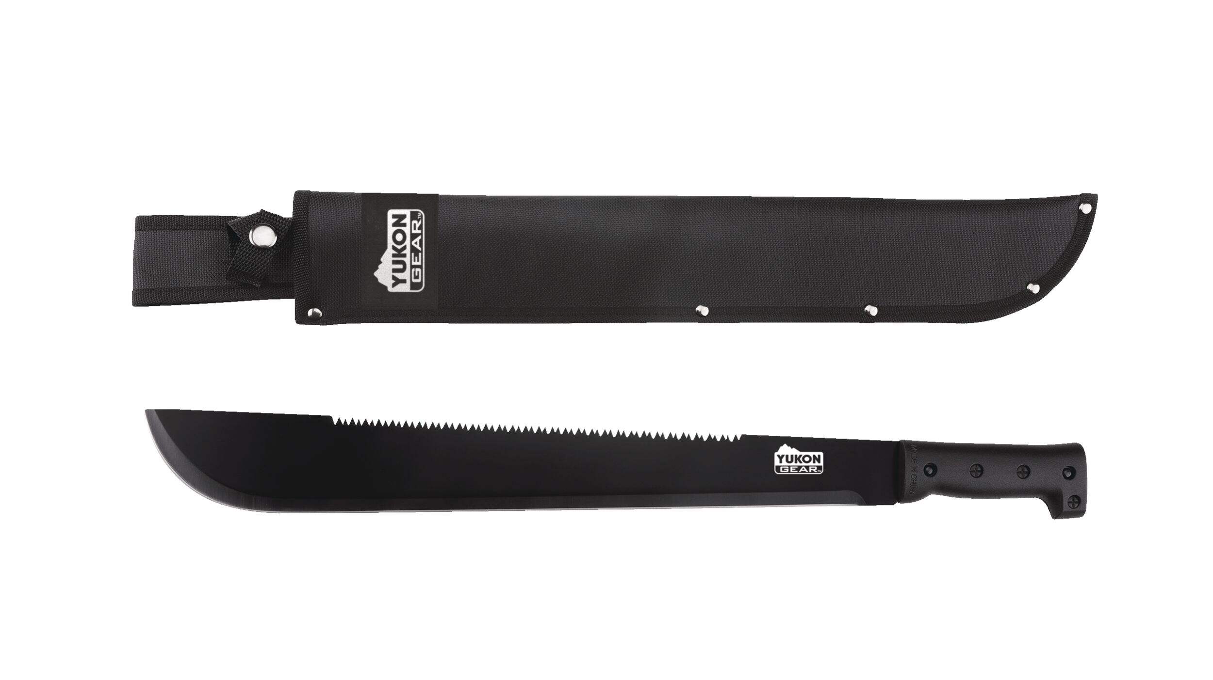 Lame tranchante avec dos de scie dentelé pour débroussailler, couper, débroussailler des sentiers, dépouiller des bûches ou abattre de petits arbres