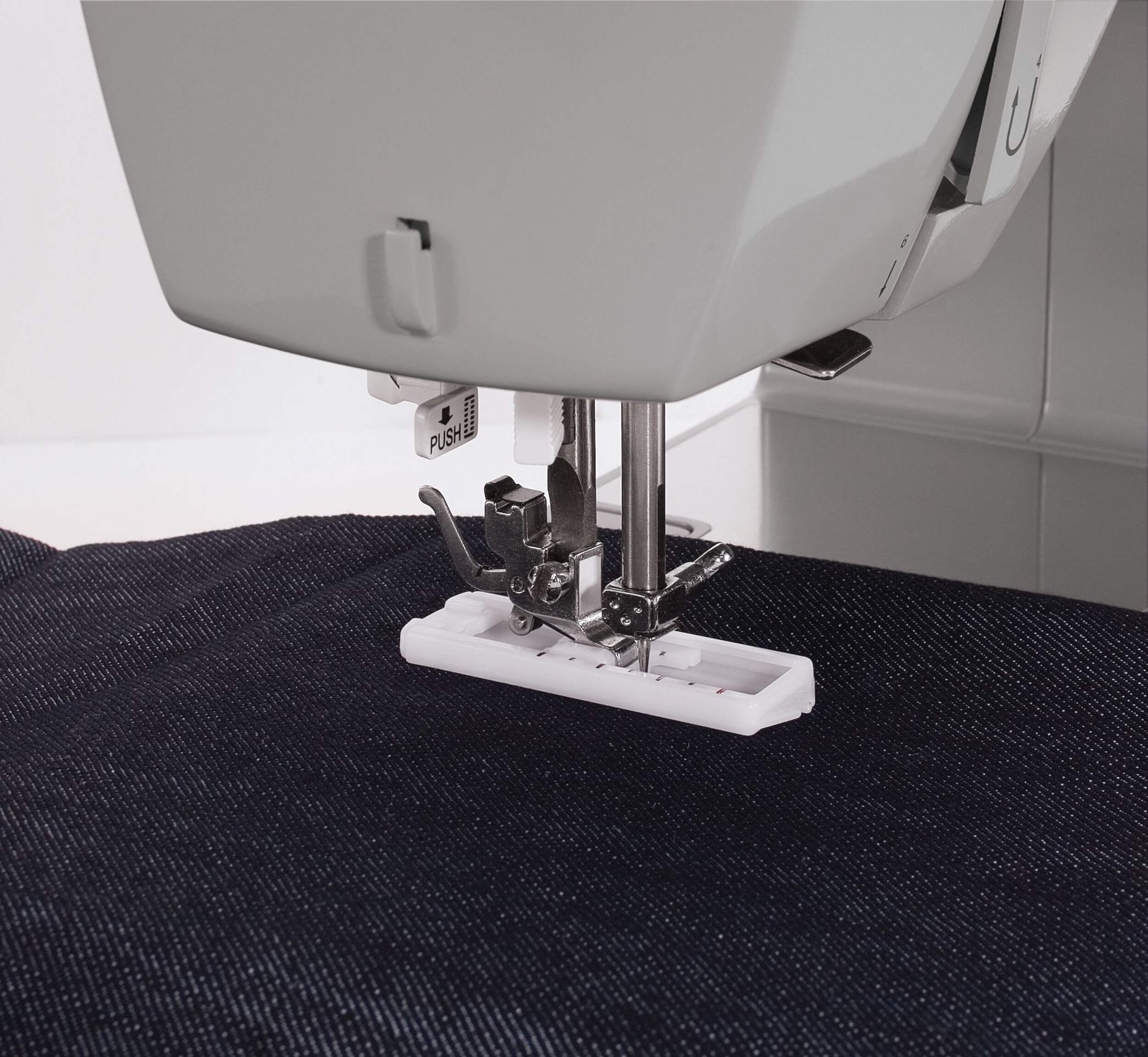 Poussoir extra élevé du pied presseur : Offre plus d'espace de dégagement pour placer plusieurs couches de tissu épais sous le pied presseur