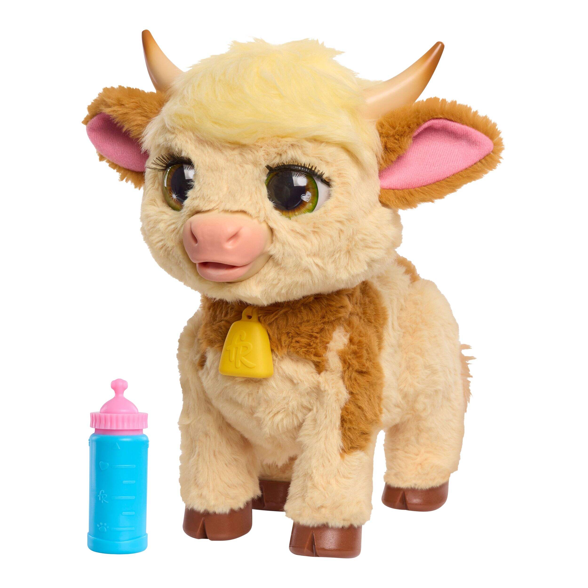 Maggie la vache à nourrir et qui suit FurReal offre plus de 50 sons et réactions. Nourrissez Maggie au biberon et regardez-la marcher pour suivre le biberon. Le biberon accessoire est inclus. Maggie a une hauteur de 11 po et une longueur de 10 po. Pour les enfants de 4 ans et plus.