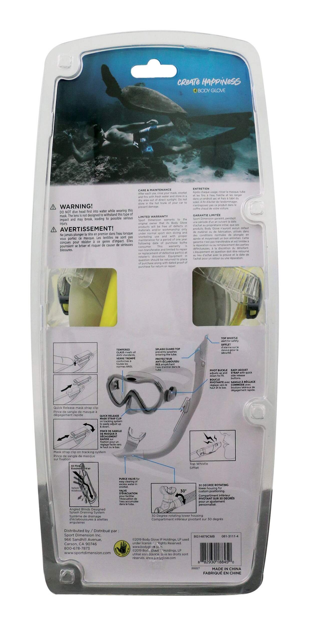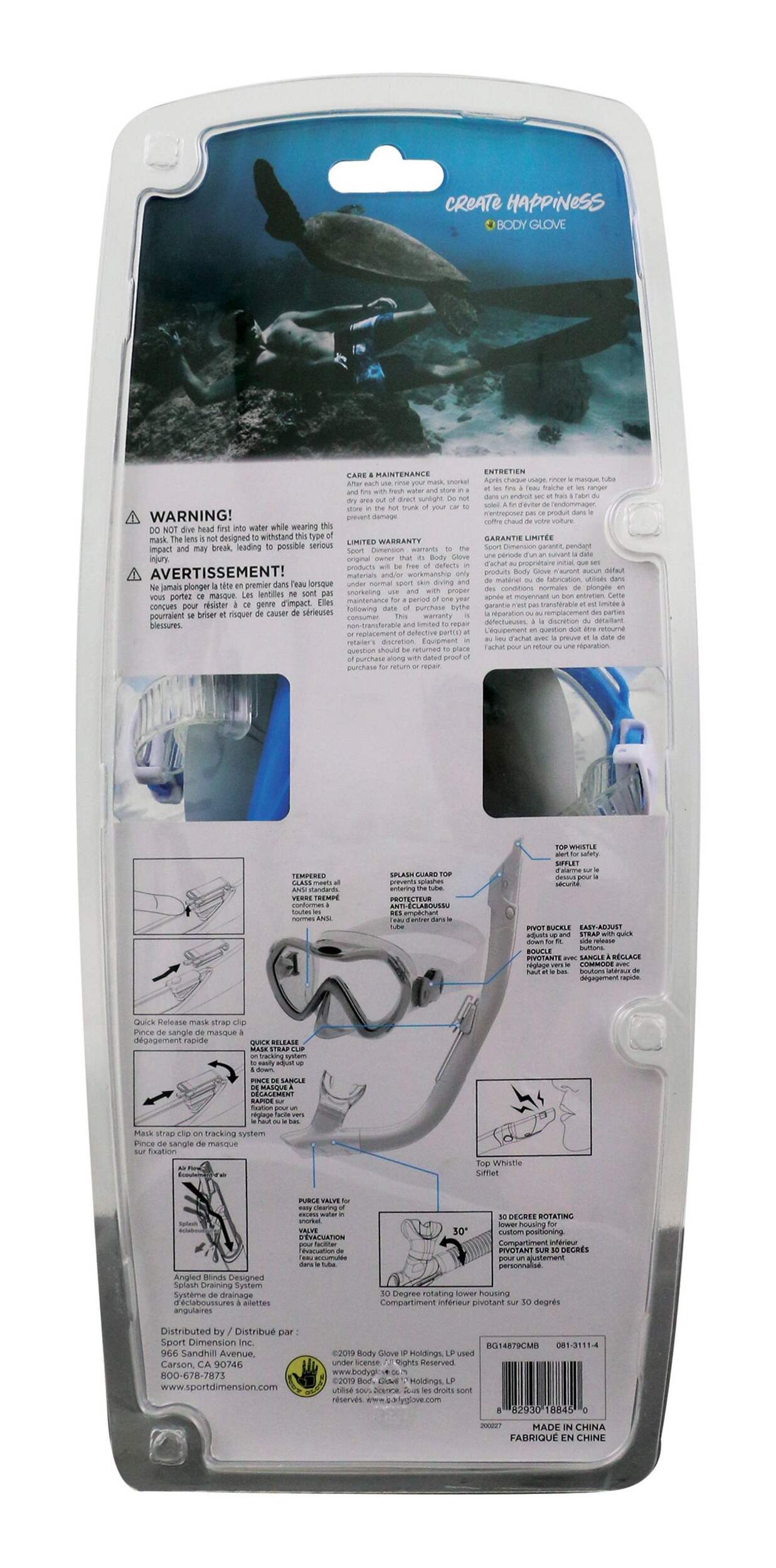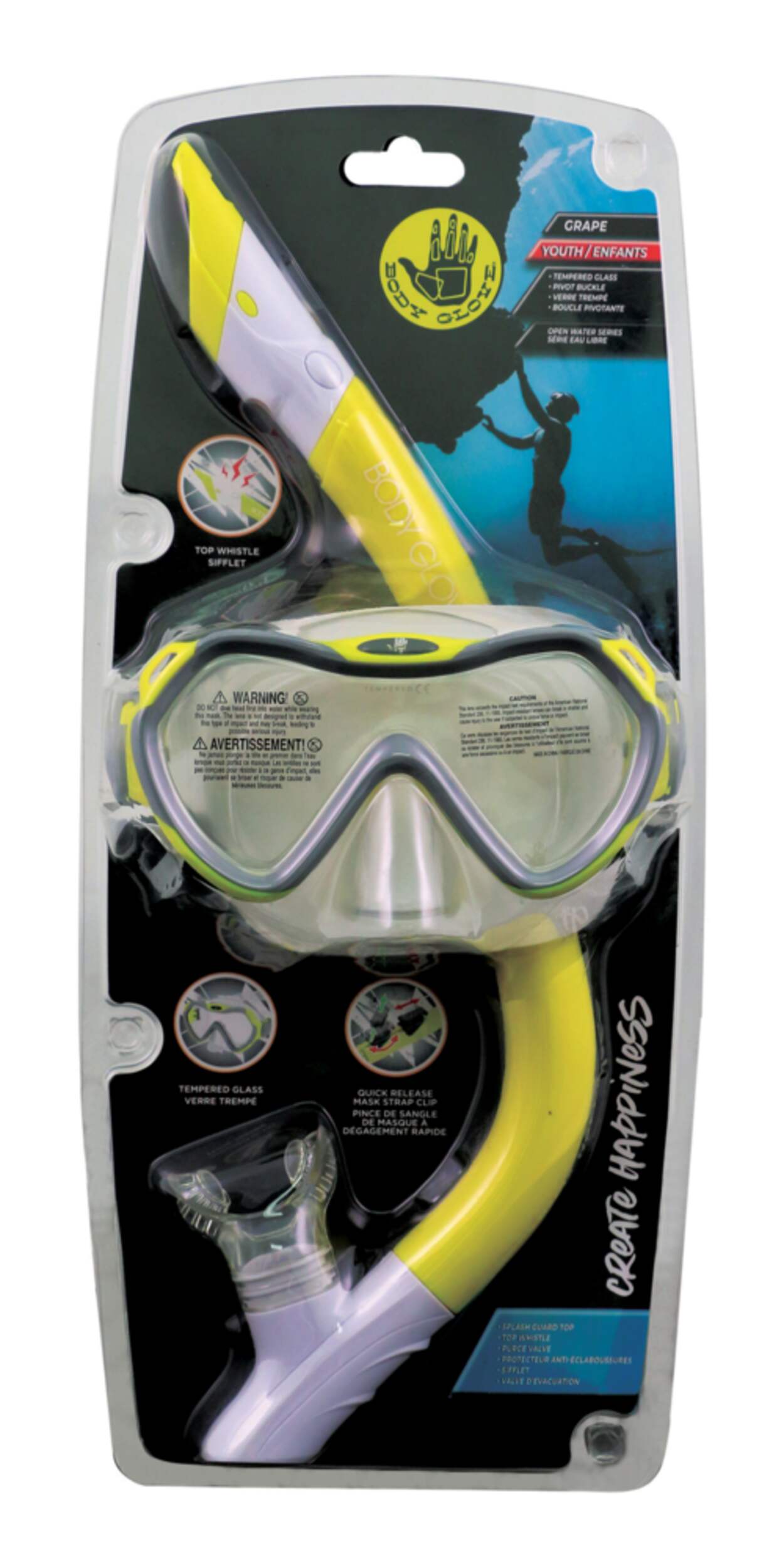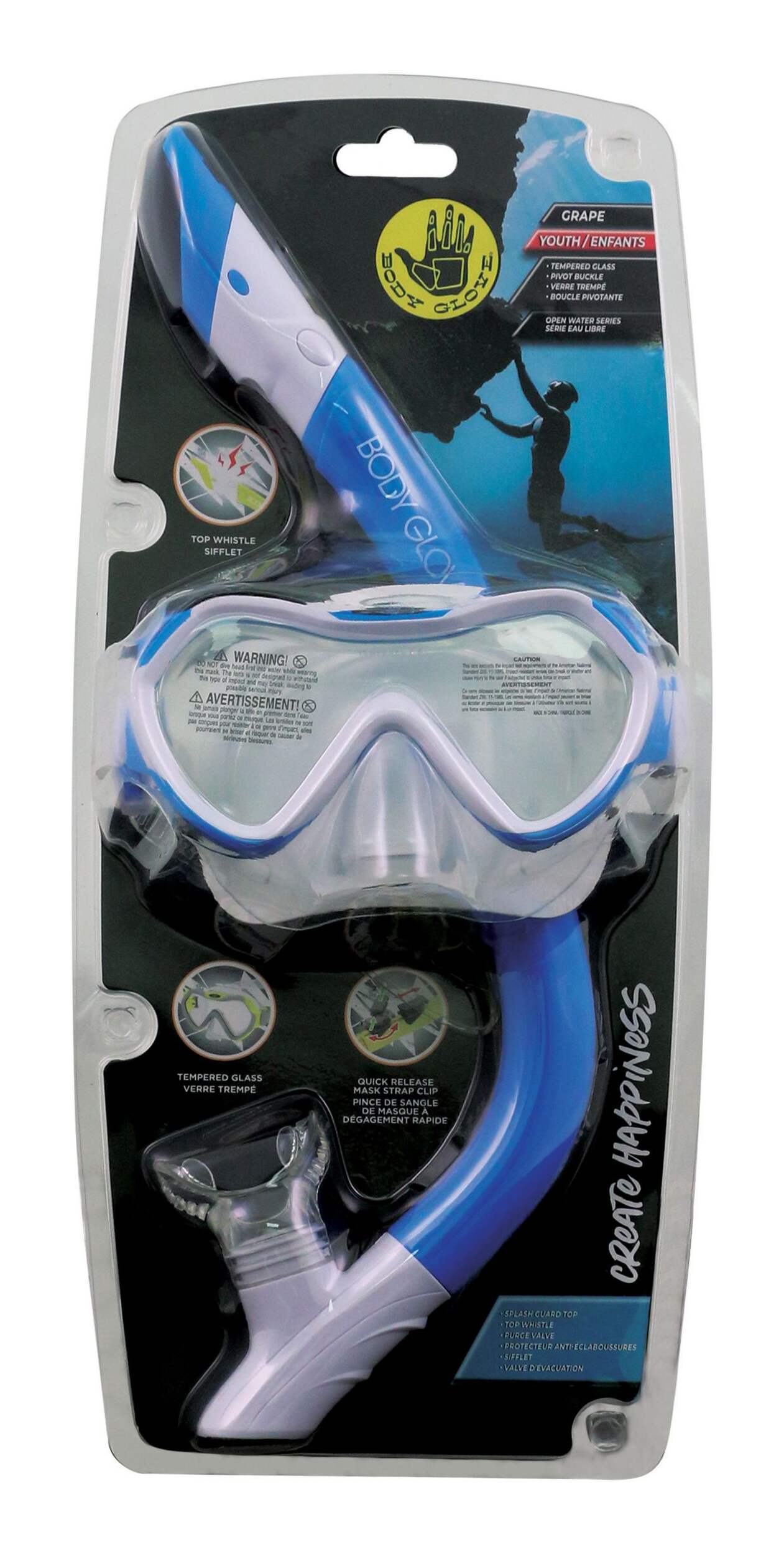 Le masque et le tuba pour enfants et adultes Body Glove Grape pour enfants et jeunes sont conçus pour inspirer des aventures sous-marines en toute sécurité et en total confort. Le masque en verre trempé est conforme aux normes ANSI et il offre une vue cristalline et un ajustement parfait. Le tuba permet de respirer facilement et de vider l'eau sans tracas, ce qui est idéal pour jouer à la piscine ou explorer l'océan. La jupe et la courroie souples Ply Flex offrent un confort durable, tandis que la sangle à ajustement rapide et la boucle pivotante permettent de trouver l'ajustement parfait en un clin d'oeil.