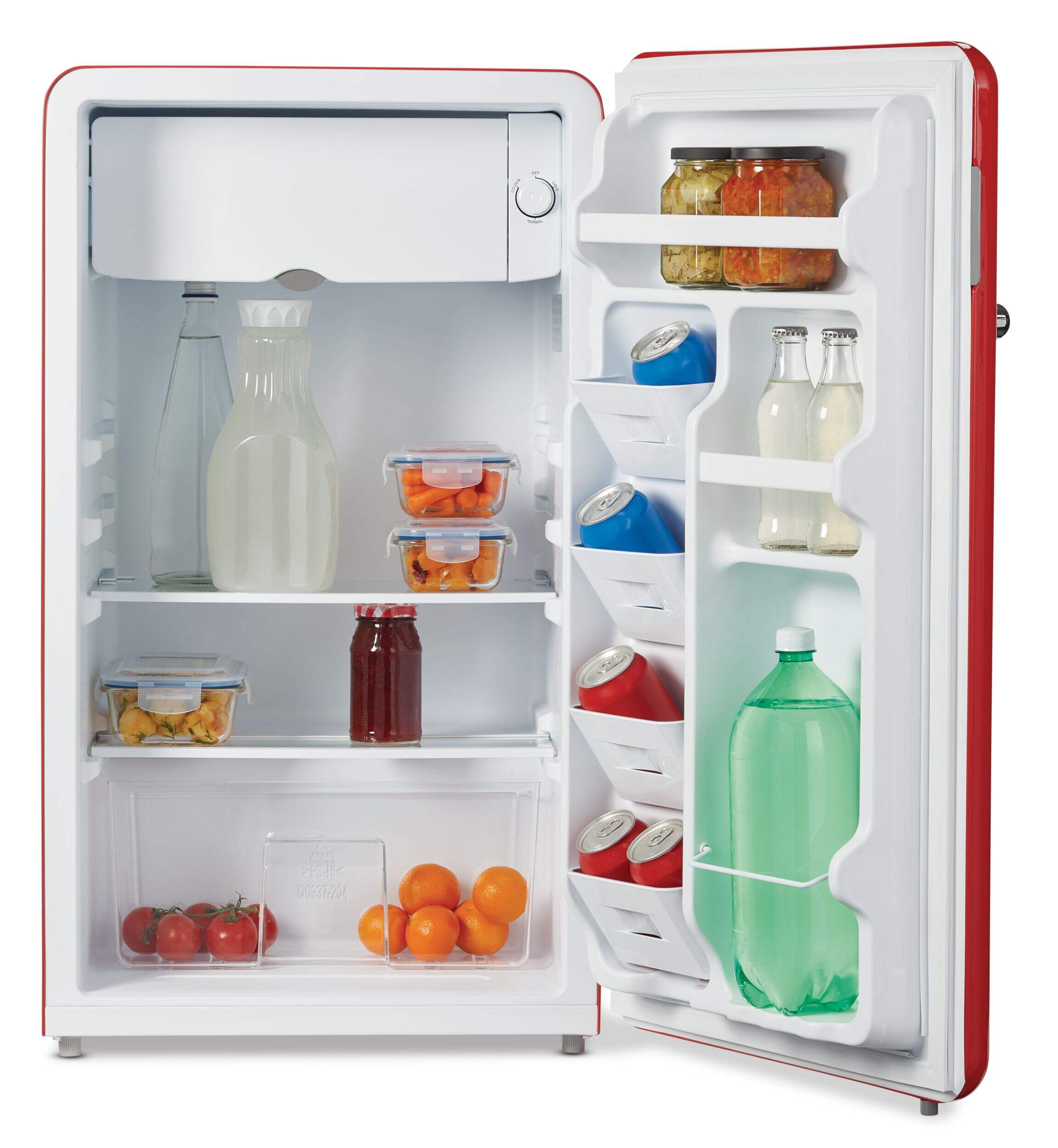 Ce mini réfrigérateur E-Star de 3,3 pieds cubes MASTER Chef rouge est idéal pour conserver les aliments et les boissons au froid dans n'importe quelle pièce. Que ce soit pour une chambre d'étudiant ou pour simplement y ranger des boissons ou des collations à la maison, ce mini réfrigérateur vous offre de l'espace supplémentaire pour les conserver au frais. Élégant et moderne, il est parfait dans une chambre d'étudiant, dans un bureau à domicile, dans le bar et plus encore. Ce mini réfrigérateur écoénergétique au fini rouge tendance est même équipé d'un compartiment congélateur indépendant. Il comporte deux tablettes en verre facile à nettoyer, un bac à fruits et légumes et une bande d'étanchéité en plastique. Le distributeur de canettes et l'espace de rangement pour bouteilles de 2 L dans la porte libèrent de l'espace sur les tablettes tout en rendant vos boissons favorites accessibles facilement. Autres caractéristiques : coquille extérieure arrondie R40, charnière latérale à fermeture automatique en acier inoxydable, poignée latérale et thermostat réglable. Réglez facilement la température interne en fonction de vos besoins, ajustez la hauteur des pattes, et voilà!