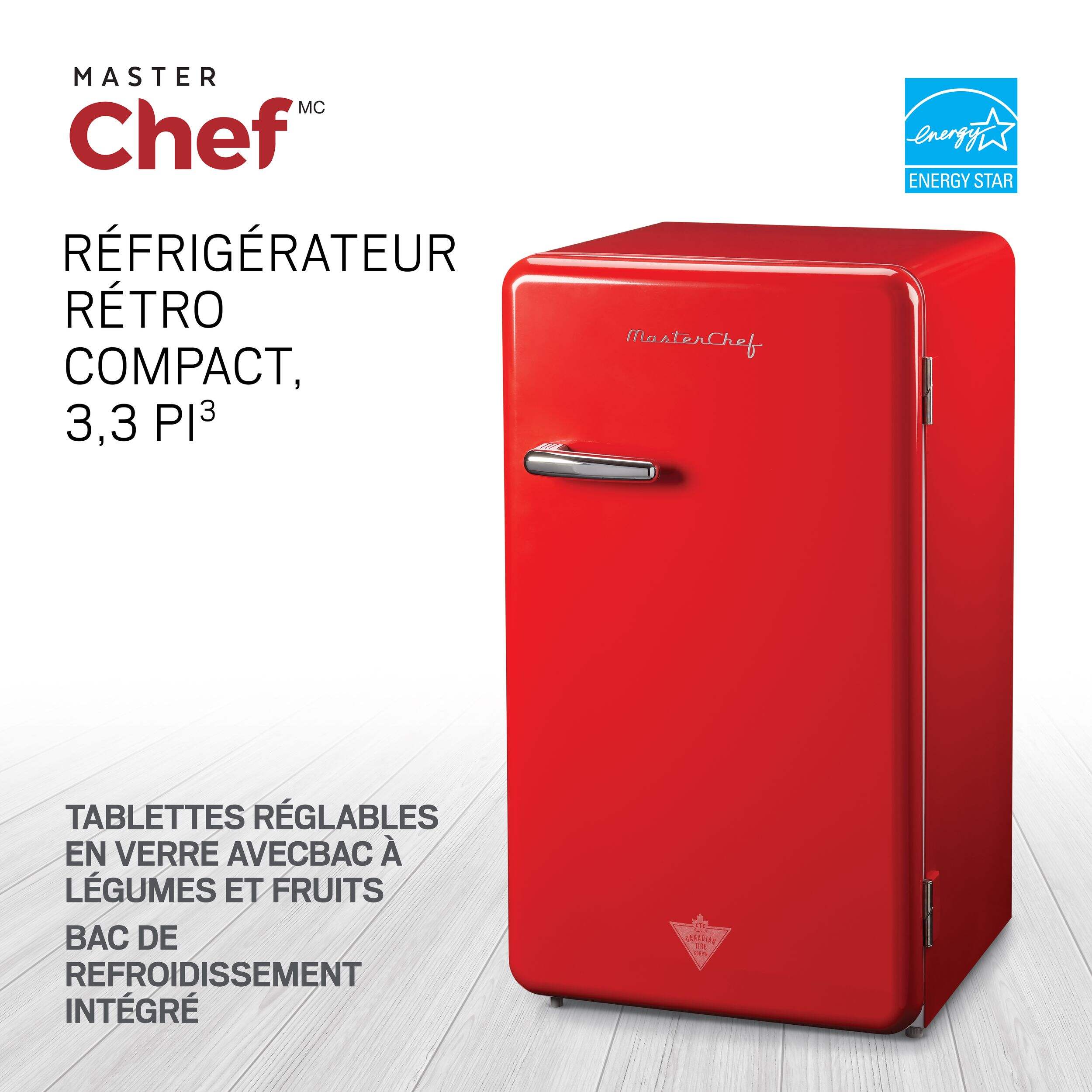 Mini réfrigérateur MASTER Chef E-Star, édition spéciale du 100e anniversaire de Canadian Tire, avec rangement pour canettes et bouteille de 2 L