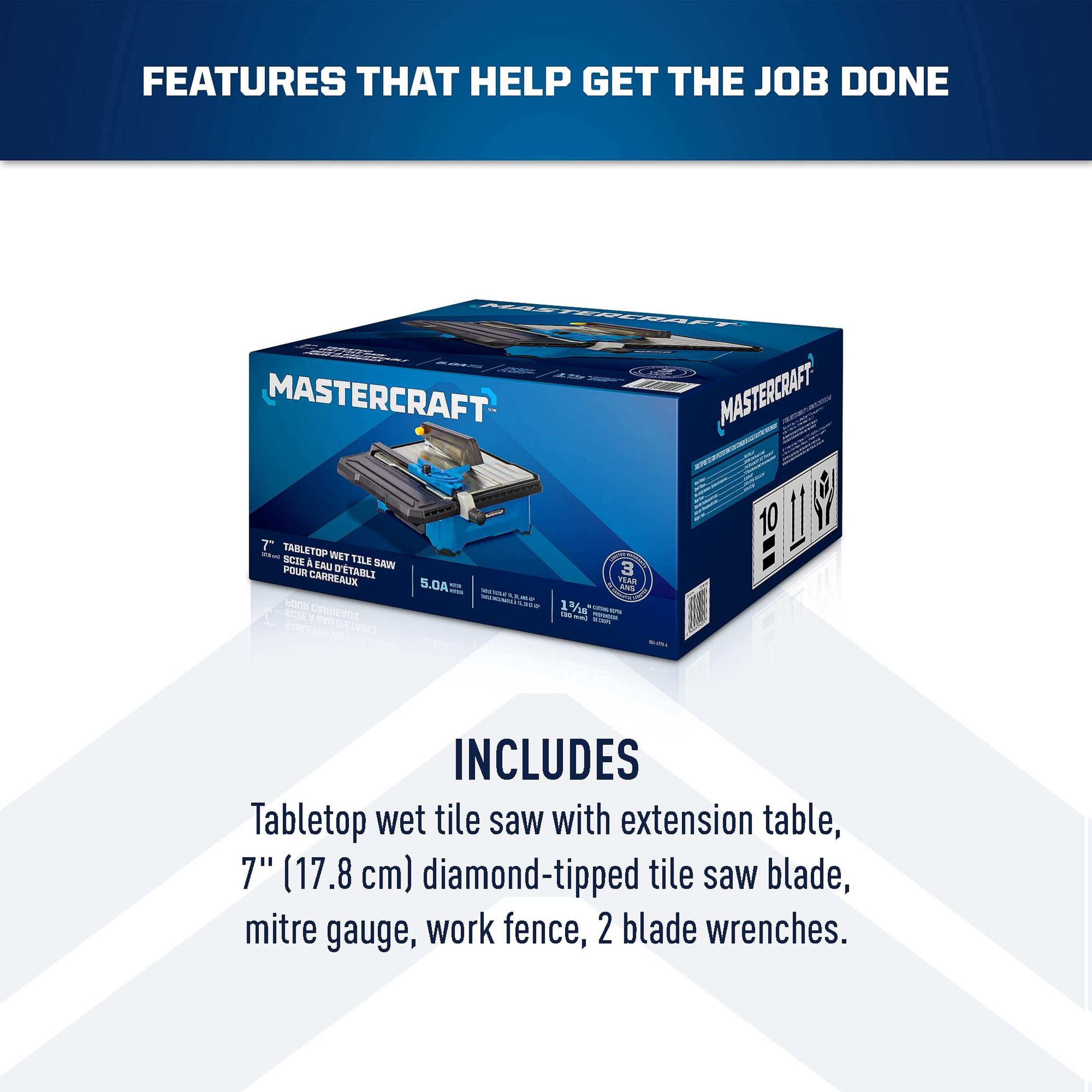 La scie à carreaux humides Mastercraft de 5 A est conçue pour les travaux de coupe les plus difficiles. Cette scie à carreaux humides coupe facilement les carreaux de céramique, la porcelaine et la pierre. Son guide réglable permet des coupes précises à des angles de 0 à 45 degrés, ce qui le rend idéal pour divers projets. Il suffit de remplir le bac à eau intégré pour minimiser la poussière et améliorer l'efficacité de coupe, pour un fini lisse et professionnel à tout coup.