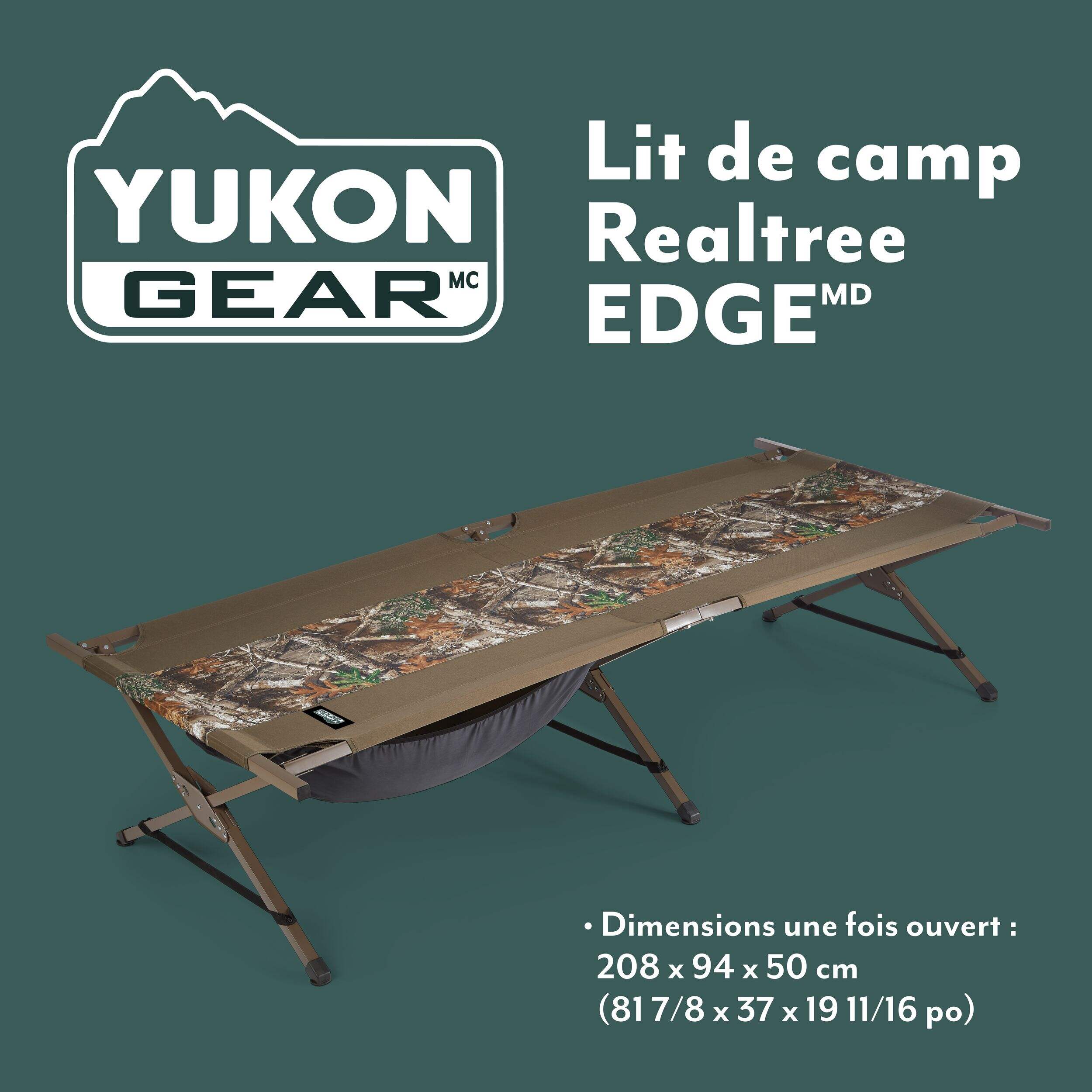 Le lit de camping pliant et portatif Yukon Gear à motif camouflage est conçu pour vous permettre de rester confortable et surélevé lorsque vous vous reposez dehors, que vous partiez pour la chasse ou le camping. Conçu pour supporter jusqu'à 300 lb, il offre une plateforme robuste qui assure un sommeil réparateur après une longue journée dans la nature. Son cadre pliable simple permet une installation rapide et un transport facile, ce qui en fait un ajout essentiel à votre équipement de plein air.