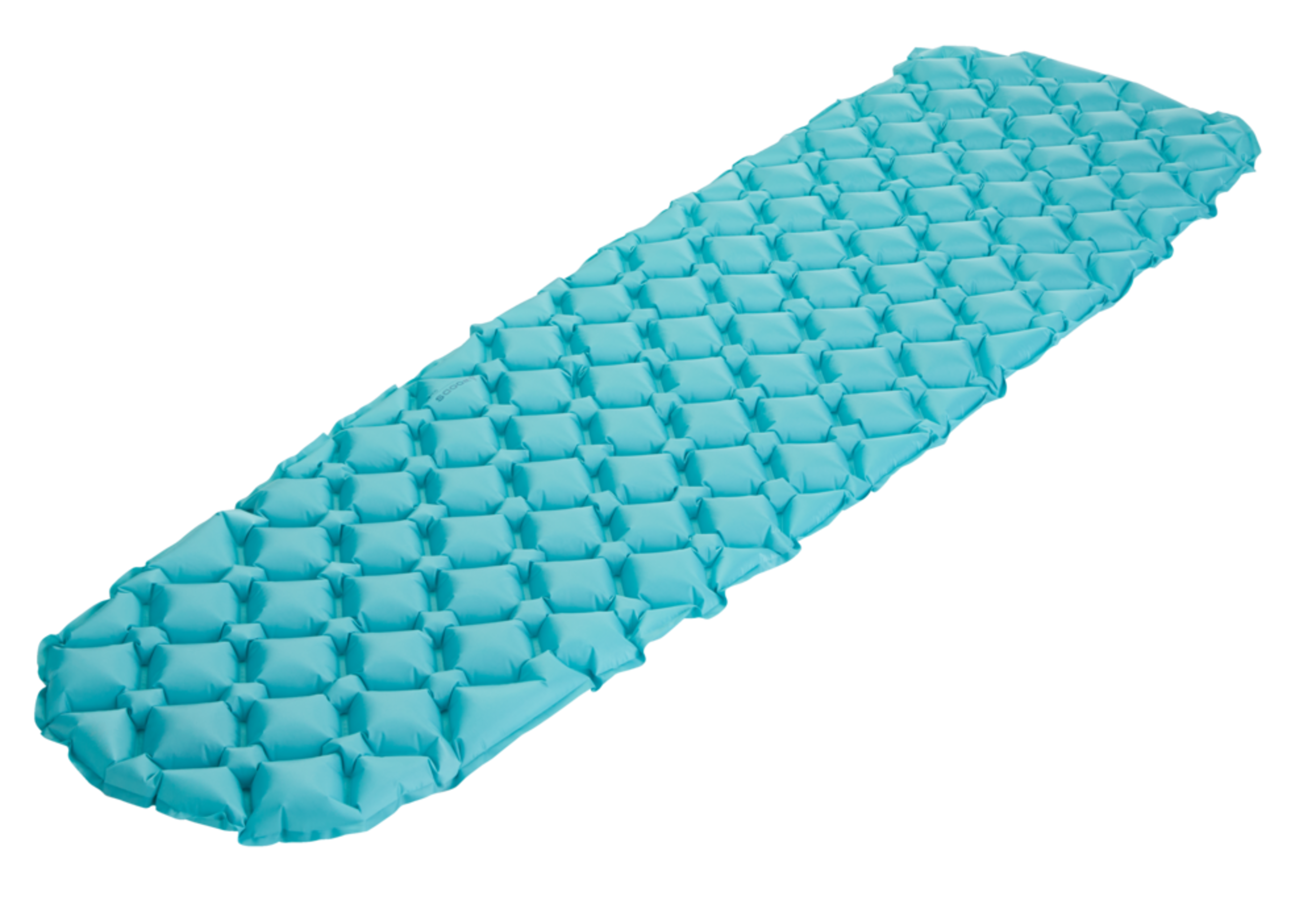 Se gonfle à l'aide de la pompe à soufflets en nylon fournie (fixer la pompe à soufflets au matelas, emprisonner l'air dans la pompe à soufflets en l'agitant ou en soufflant de l'air dans celle-ci, rouler pour gonfler le matelas pneumatique, répéter au besoin)