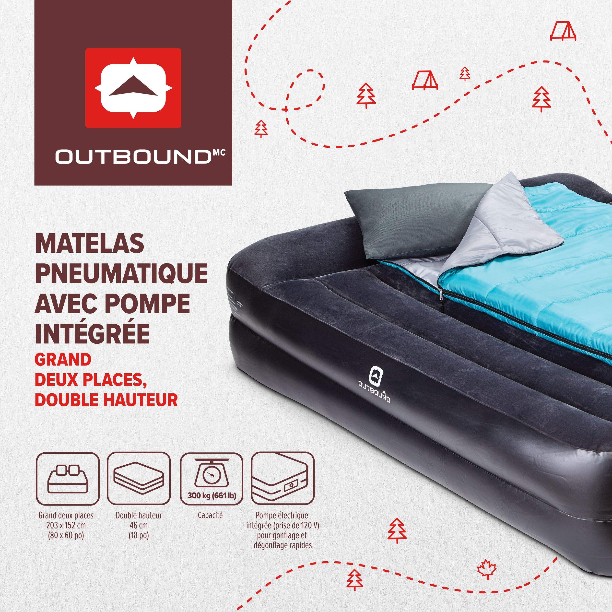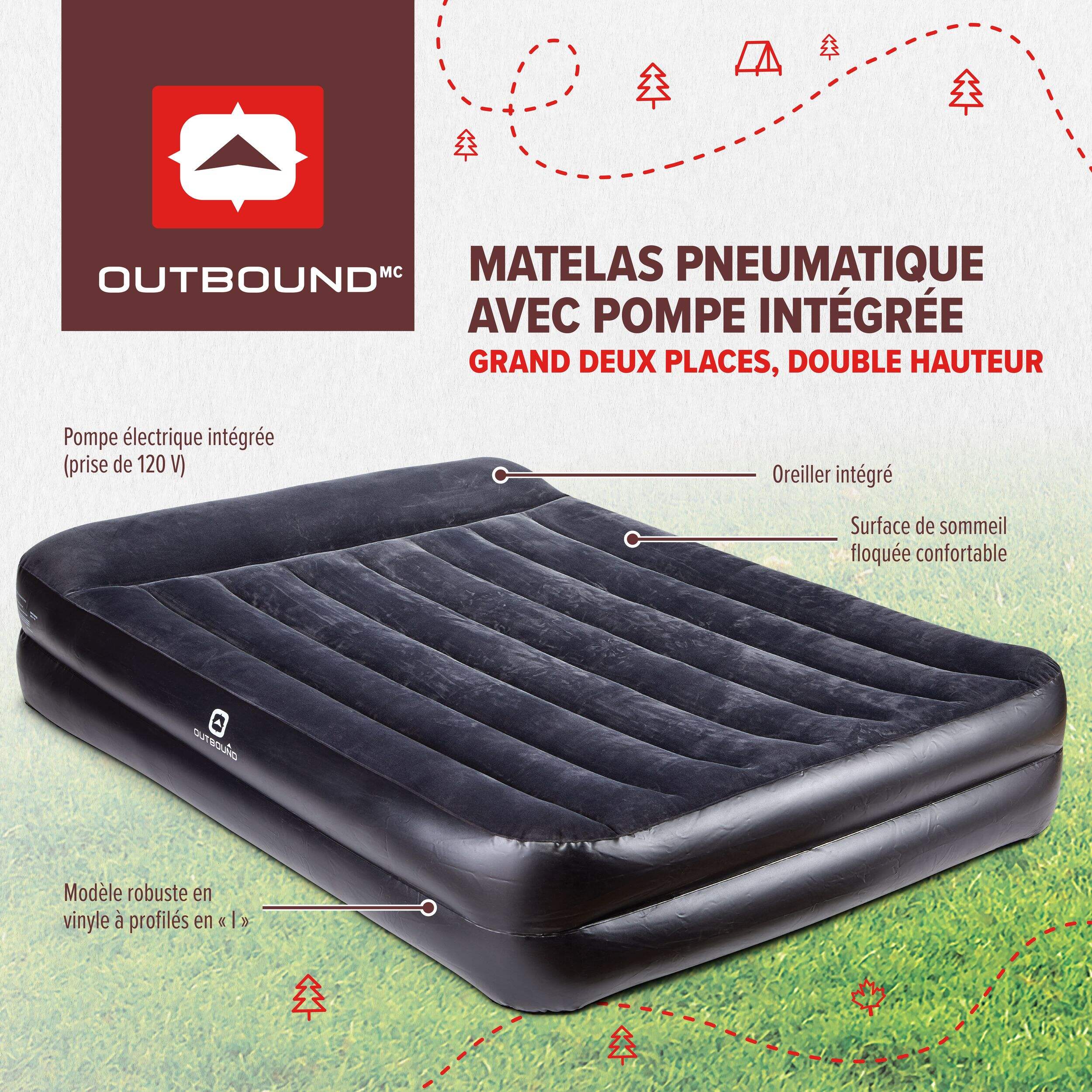 Matelas pneumatique grand double hauteur Outbound, pompe 120 V et oreiller intégré