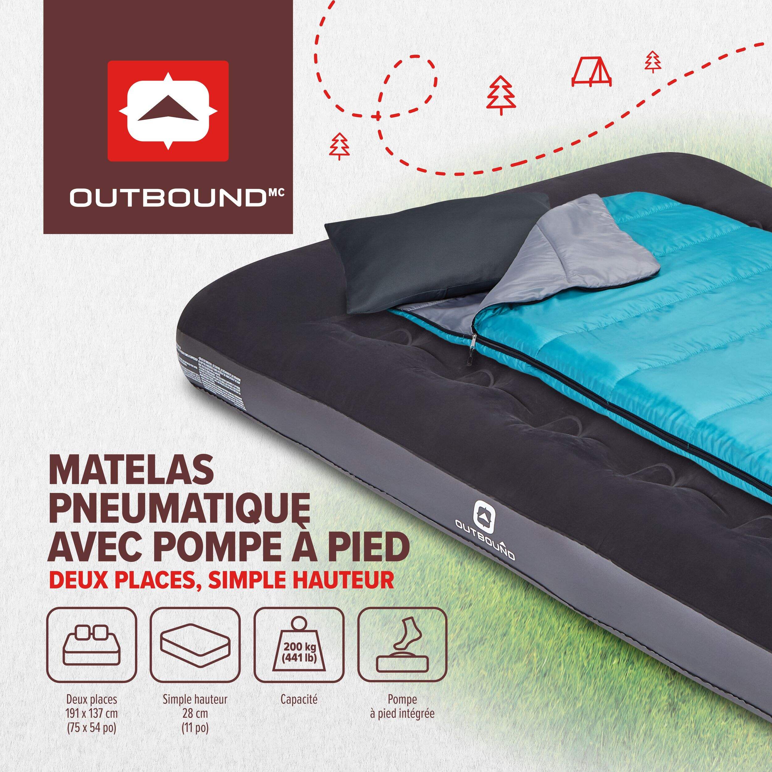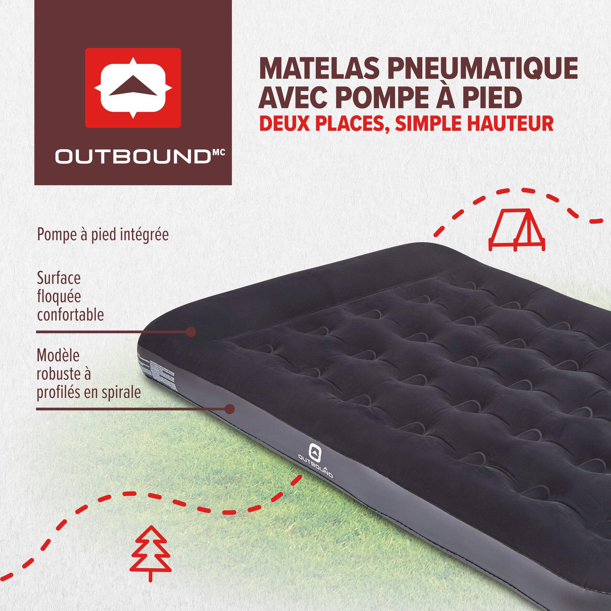 Le matelas pneumatique Outbound à une place de hauteur simple est le compagnon idéal pour camper sous les étoiles ou pour organiser une soirée pyjama improvisée. Ce matelas pneumatique à deux places est doté d'une structure à ressort robuste et d'une confection en vinyle, assurant une répartition uniforme du poids et une longévité accrue pour une utilisation à l'extérieur. La surface floquée confortable favorise la ventilation, vous gardant au frais sans avoir besoin de literie supplémentaire. Conçu pour être durable et pratique, ce matelas pneumatique résistera aux soirées de camping et au découchage pendant de nombreuses années.