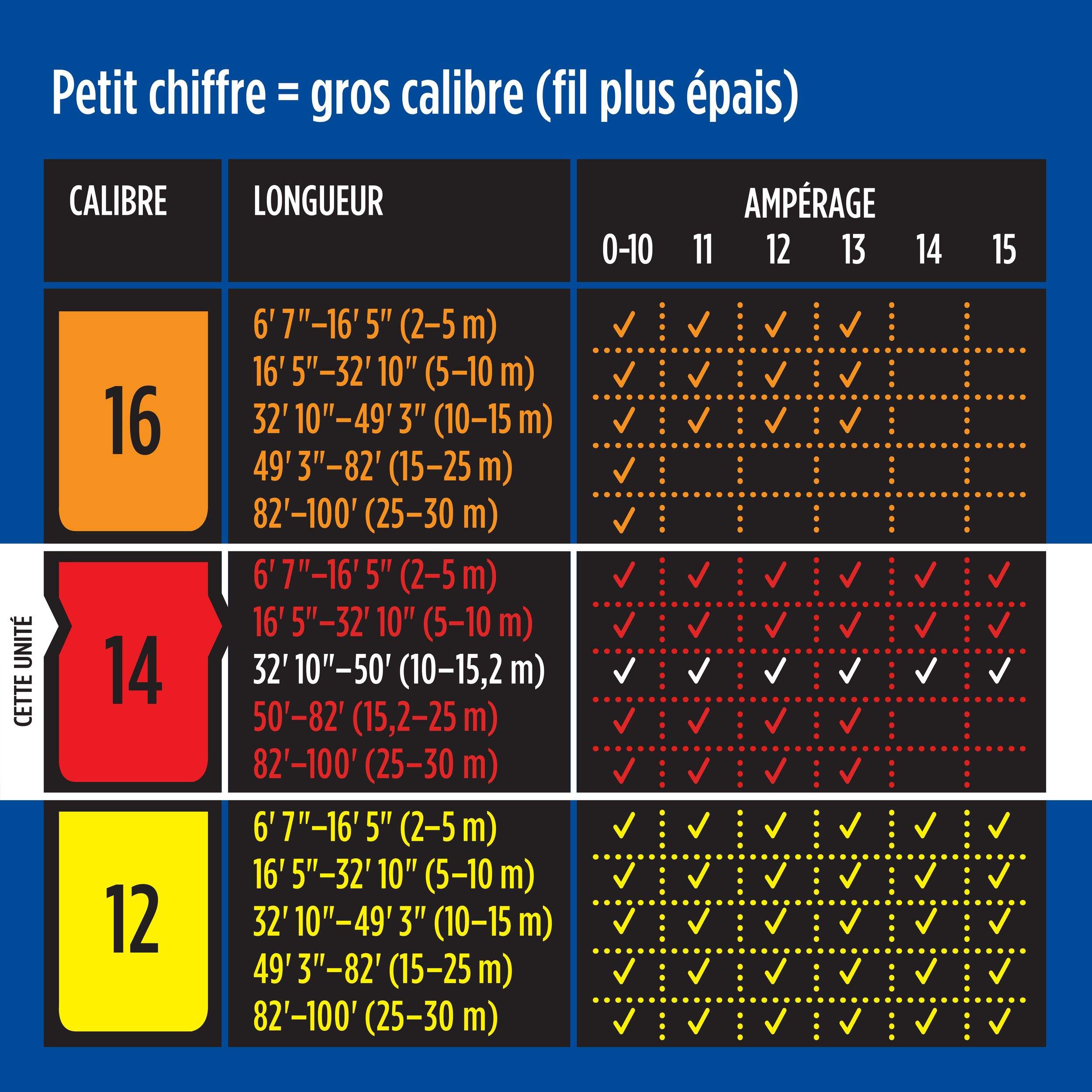 La rallonge électrique SJTW de 50 pi de maximum protège vos outils en gardant vos connexions électriques au sec et en aidant à prévenir les déconnexions indésirables. Cette rallonge NOMA est dotée d'une gaine durable idéale pour l'intérieur et l'extérieur. Le cordon d'alimentation est également résistant à l'eau, ce qui le rend plus sécuritaire pour une utilisation dans des conditions incertaines.