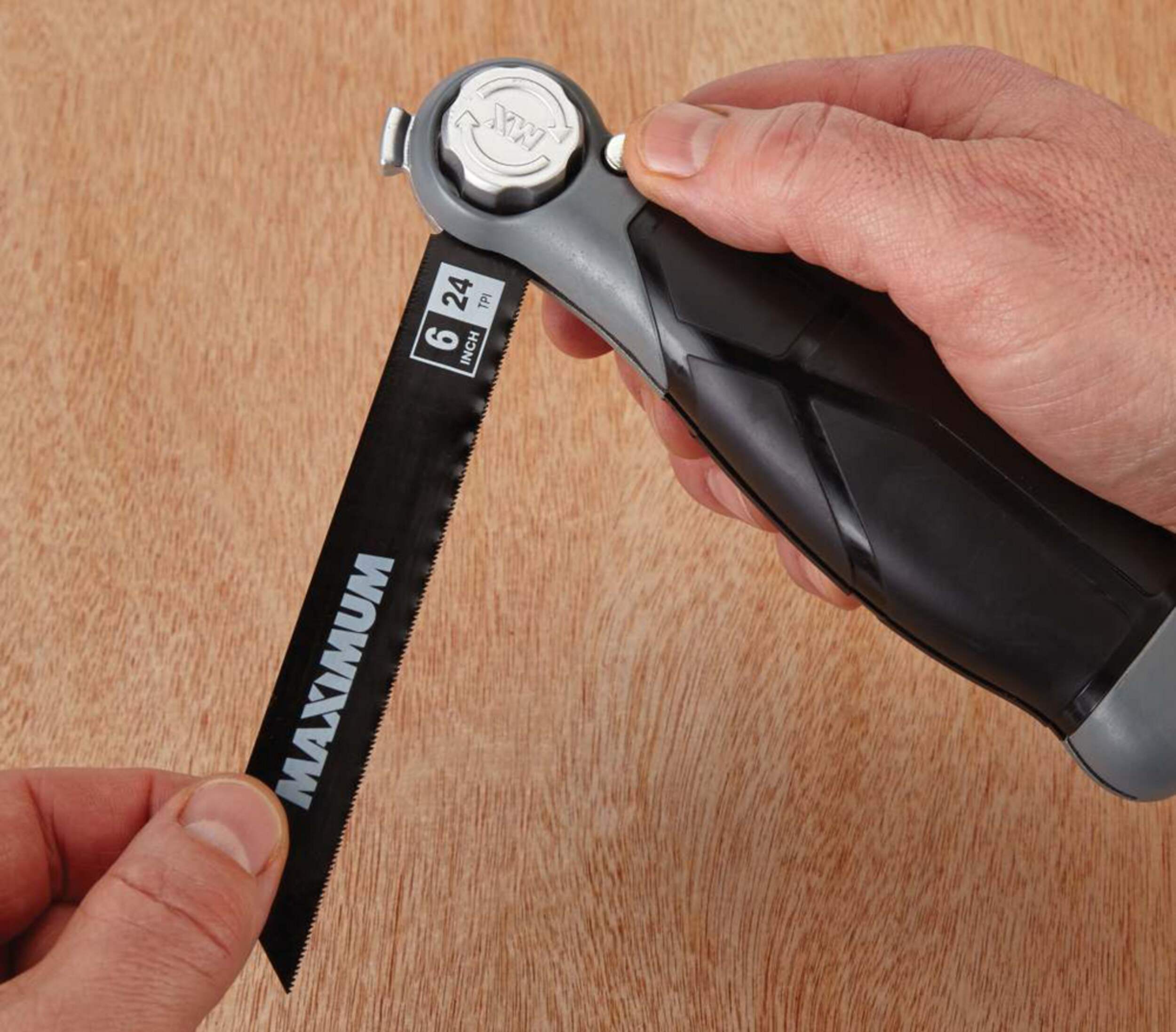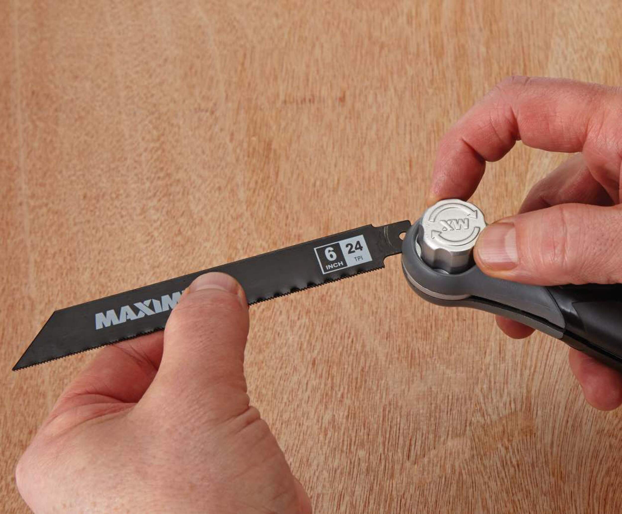 Scie à lame coulissante pliante MAXIMUM de 3 pièces dotée d'un mécanisme de changement rapide pour changer rapidement et facilement les lames