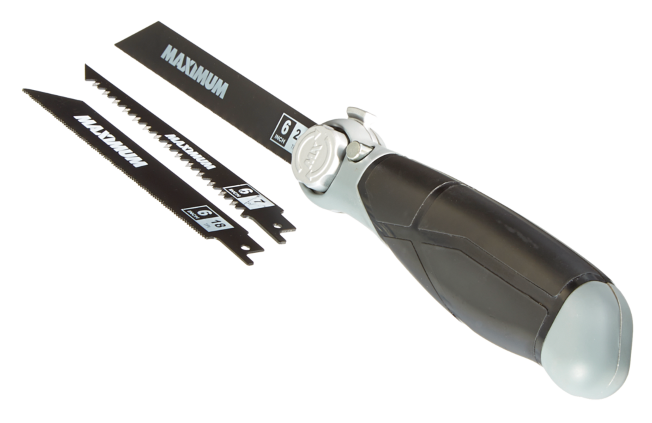 Scie à lame coulissante pliante MAXIMUM de 3 pièces qui est un excellent ajout à la boîte à outils de tout bricoleur. Scie à cloison sèche dotée d'un mécanisme de changement rapide qui vous permet de changer les lames rapidement et facilement et qui peut utiliser n'importe quelle lame de scie alternative standard, ce qui la rend incroyablement polyvalente par rapport aux autres scies. Poignée de ce coupe-cloison sèche qui est conçue pour tenir confortablement dans votre main et comporte des rainures sur toute la poignée pour une meilleure prise.