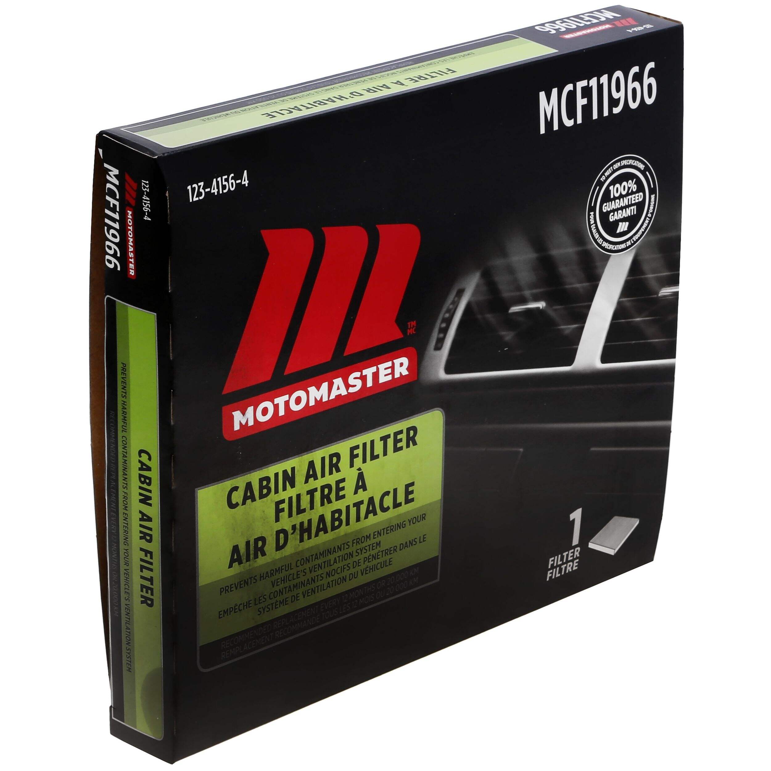 Gardez l'air de votre véhicule propre et frais grâce au filtre à air d'habitacle MotoMaster. Filtrant jusqu'à 98 % de la poussière, du pollen et des contaminants, ce filtre garantit que l'air qui pénètre dans le système de ventilation de votre véhicule est propre.
