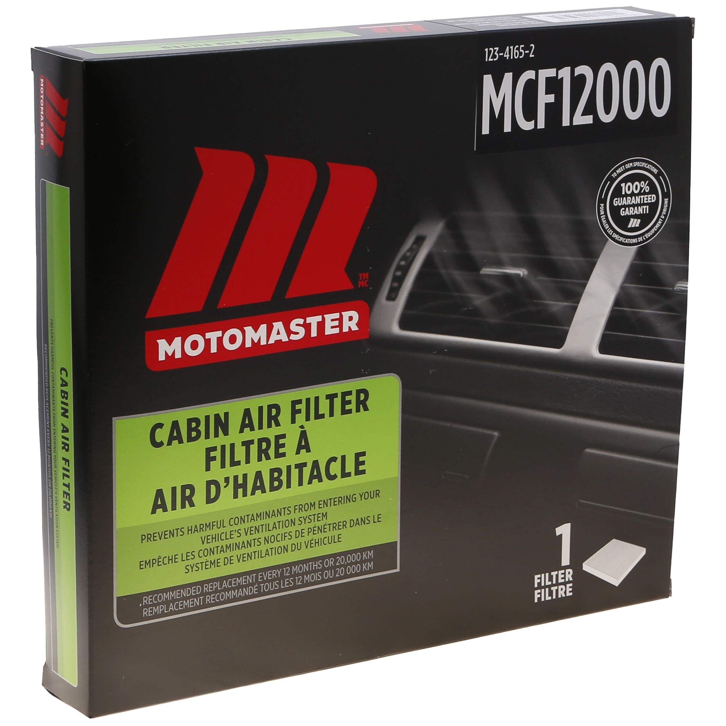 Gardez l'air de votre véhicule propre et frais grâce au filtre à air d'habitacle MotoMaster. Filtrant jusqu'à 98 % de la poussière, du pollen et des contaminants, ce filtre garantit que l'air qui pénètre dans le système de ventilation de votre véhicule est propre.