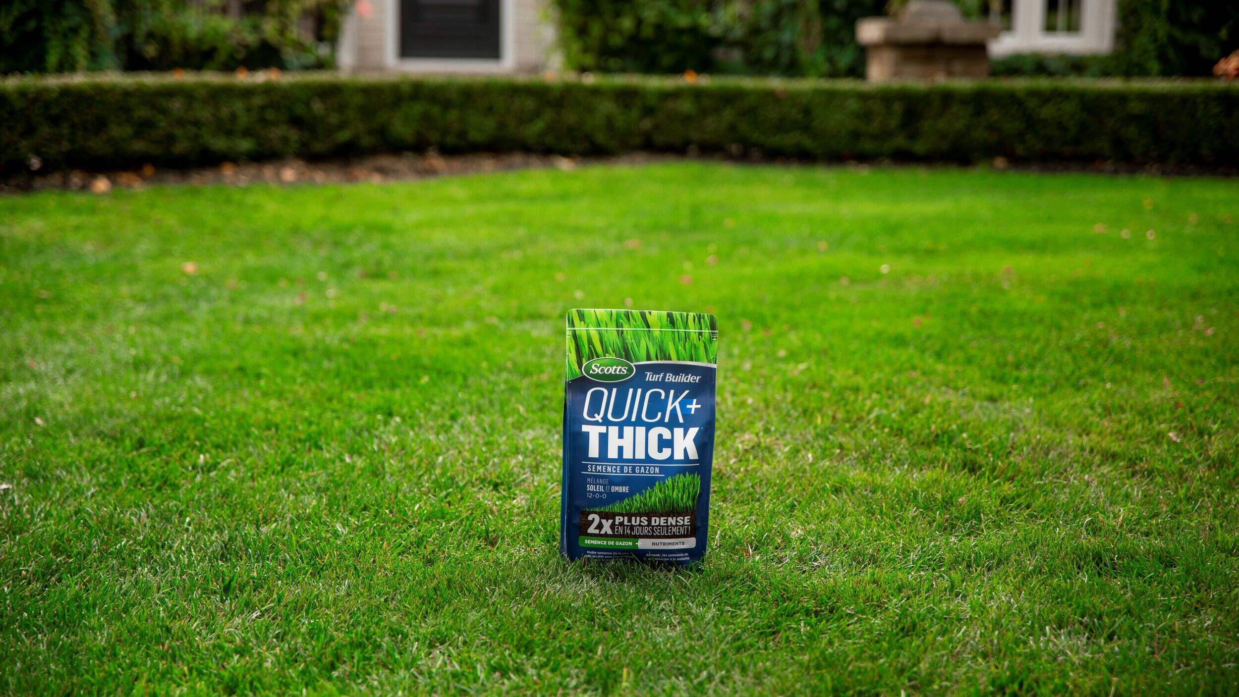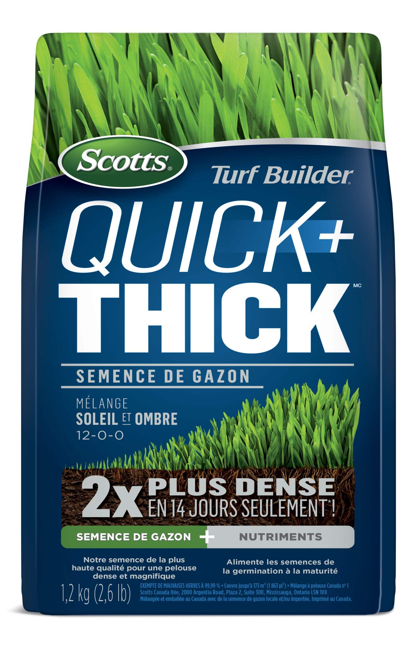 Le mélange d'engrais et de semences à gazon Scotts Turf Builder Quick + ThickMC Sun & Shade produit des résultats fiables que tout jardinier appréciera. Même si votre terrain est instable avec différents degrés de soleil et d'ombre, vous pouvez rapidement obtenir une pelouse dense et luxuriante grâce à sa formule à gazon rapide en seulement 14 jours. Notre mélange exclusif contient les semences à gazon de la plus haute qualité et un mélange spécial d'engrais à libération lente. Conçu spécialement pour le plein soleil et l'ombre partielle, il est idéal pour sursemer des pelouses existantes.