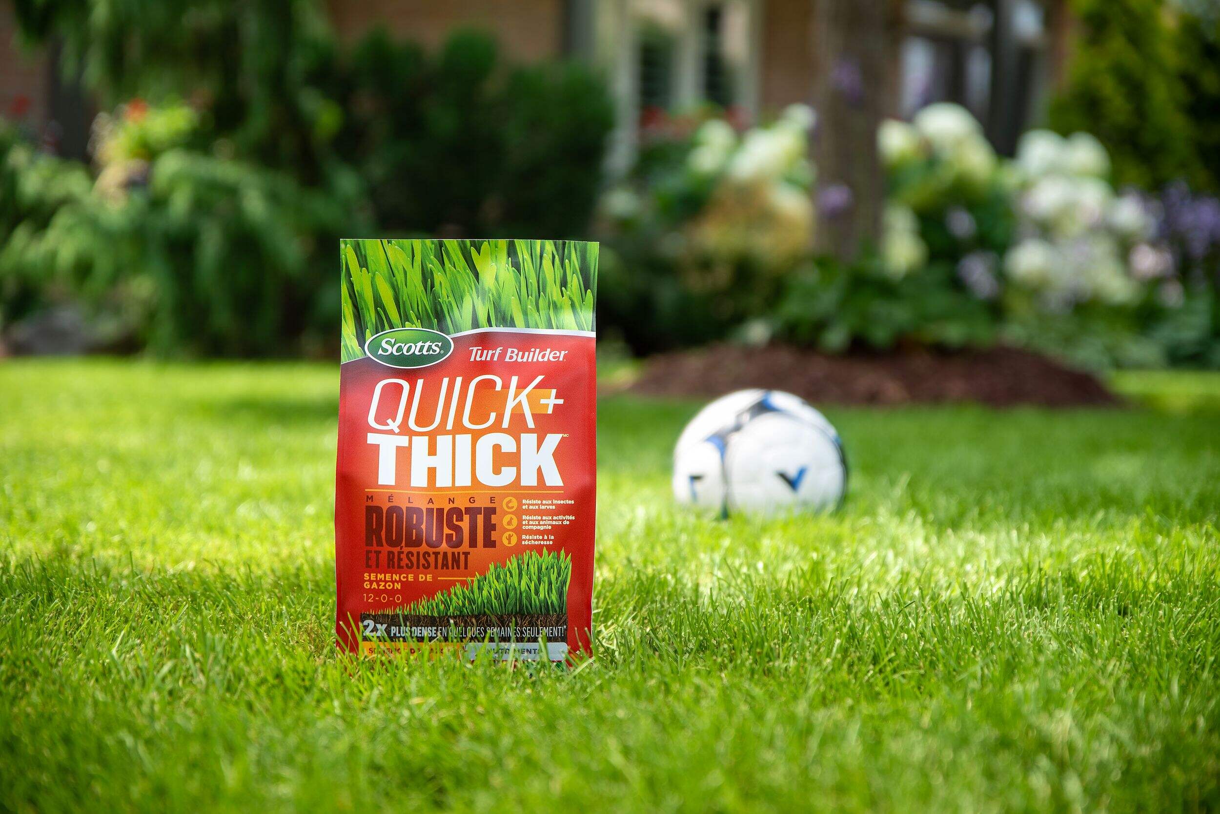 Pour une pelouse luxuriante et résistante, le mélange de semences à gazon Scotts Turf Builder Quick + Thick robuste et résistant a tout ce qu'il vous faut. Ce puissant mélange fait pousser le gazon 2 fois plus épais en quelques semaines seulement, combinant des graines de première qualité et des engrais à libération lente. Il démarre rapidement, puis se transforme en tapis vert dense et durable qui résiste aux animaux domestiques, aux insectes nuisibles et à la circulation piétonnière. Résistant à la sécheresse et pratiquement sans mauvaises herbes, il est spécialement formulé pour résister aux insectes et aux vers. Idéal pour sursemer ou créer une nouvelle pelouse sur le sol nu, c'est la solution sans souci pour une pelouse qui dure.