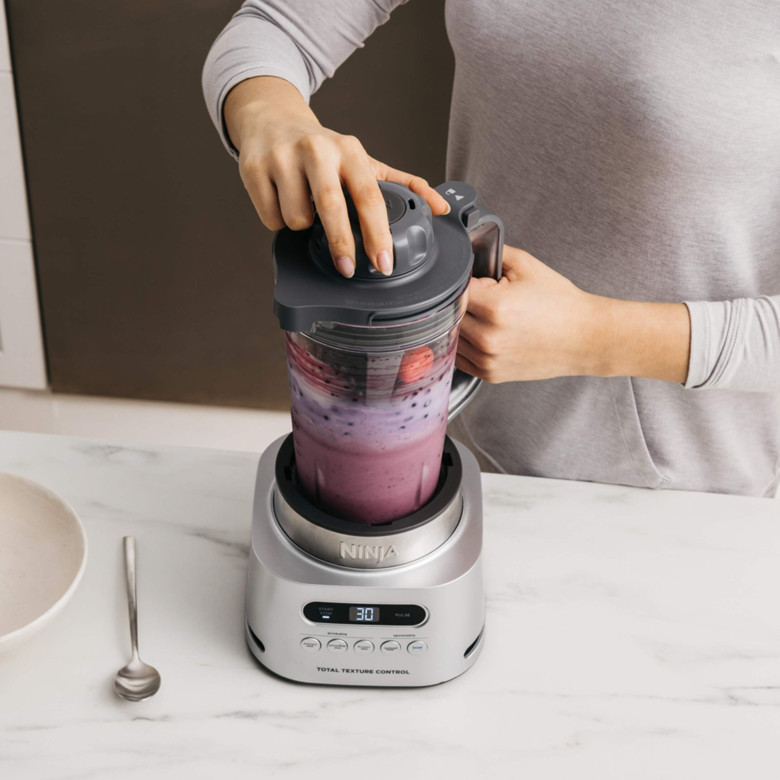 CONTRÔLE TOTAL : Pilon à torsion intégré + lames haute vitesse pour couper les ingrédients coriaces avec une puissance de crête de 1 600 W pour éviter le calage, le brassage et les secousses et ainsi obtenir la texture parfaite.