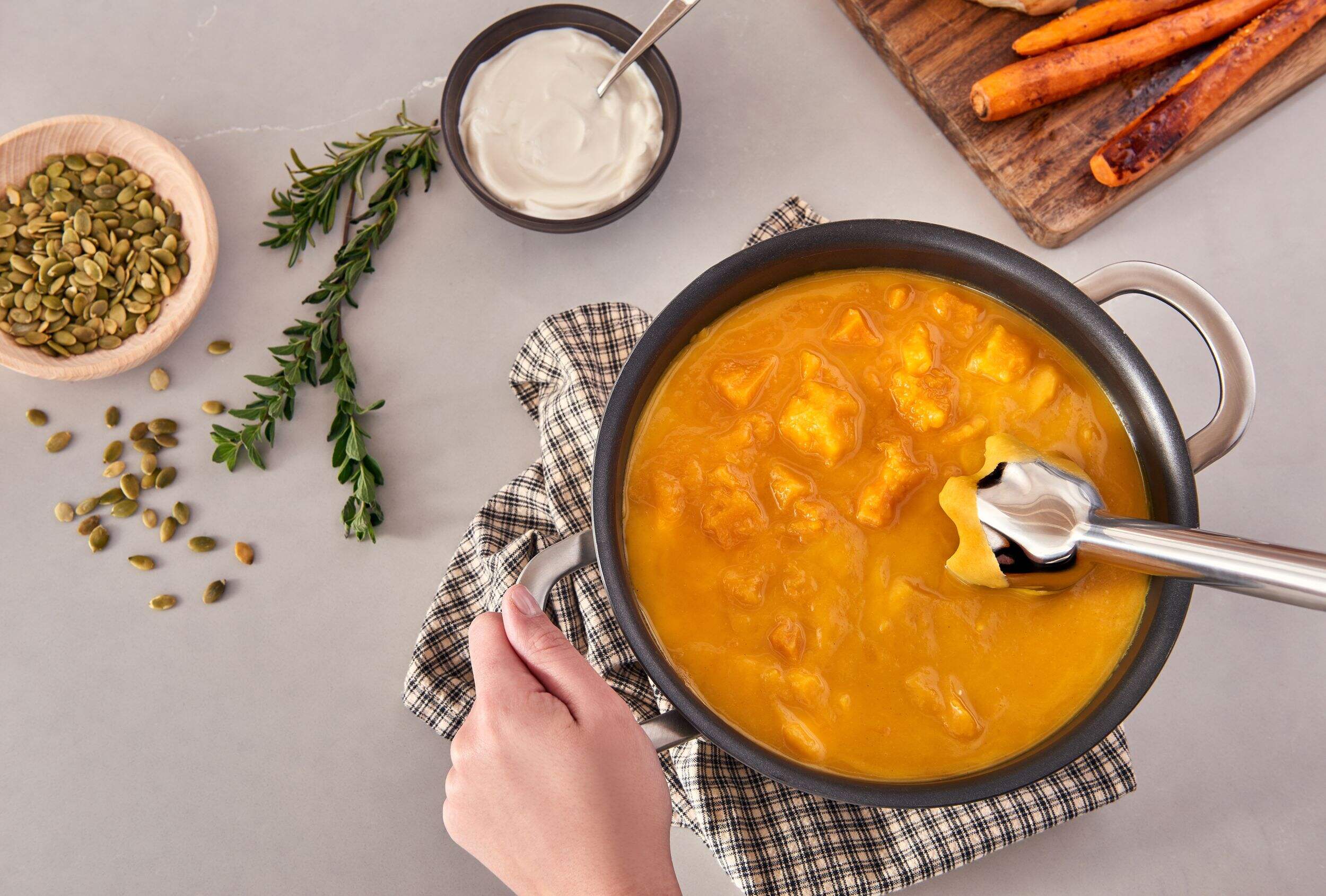 Mélangez des boissons frappées ou des soupes en un tournemain avec le mélangeur à main à 21 vitesses avec fil Braun MultiQuick 5 Vario avec récipient. Appareil de cuisine très pratique qui offre un contrôle maximal avec une utilisation facile d'une seule main. Grâce à la tige de mélange unique et aux lames en acier inoxydable de Braun qui produisent des mélanges plus fins, même les aliments les plus durs ne résisteront pas à son puissant moteur de 400 watts conçu avec précision.