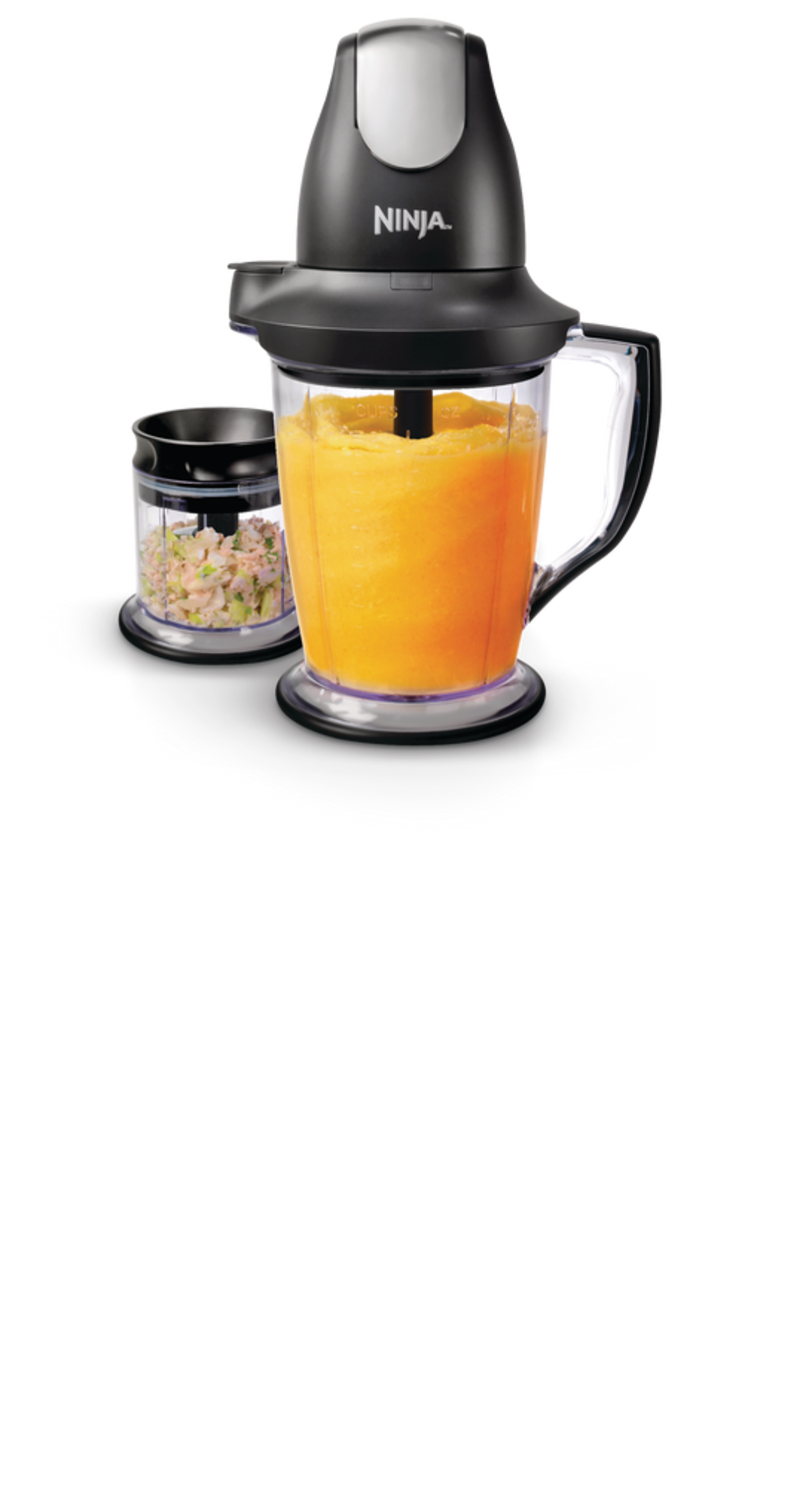 Le mélangeur NinjaMD Master PrepMD Professional s'occupe de tous vos besoins de hachage, de transformation des aliments et de mélange dans 2 récipients de taille pratique parfaits pour les portions personnelles ou pour les réceptions. Ayez la puissance dans la paume de votre main avec le mélangeur polyvalent Master Prep Professional, qui broie la glace en neige en quelques secondes, mélange les fruits congelés en boissons frappées crémeuses et hache les ingrédients frais uniformément. Émincez, coupez en dés, hachez, mélangez et réduisez en purée le mélange dans le bol hachoir de16 oz. (2 tasses) ou mélanger dans le pichet de 48 oz (6 tasses). Le module d’alimentation à puissance modifiable de 450 watts alterne rapidement entre le pichet de 48 oz et le bol hachoir de 16 oz pour plus de polyvalence dans la cuisine. Une fois que vous avez fini de mélanger, de transformer ou de hacher vos aliments, utilisez les couvercles de rangement pratiques pour garder vos aliments frais.