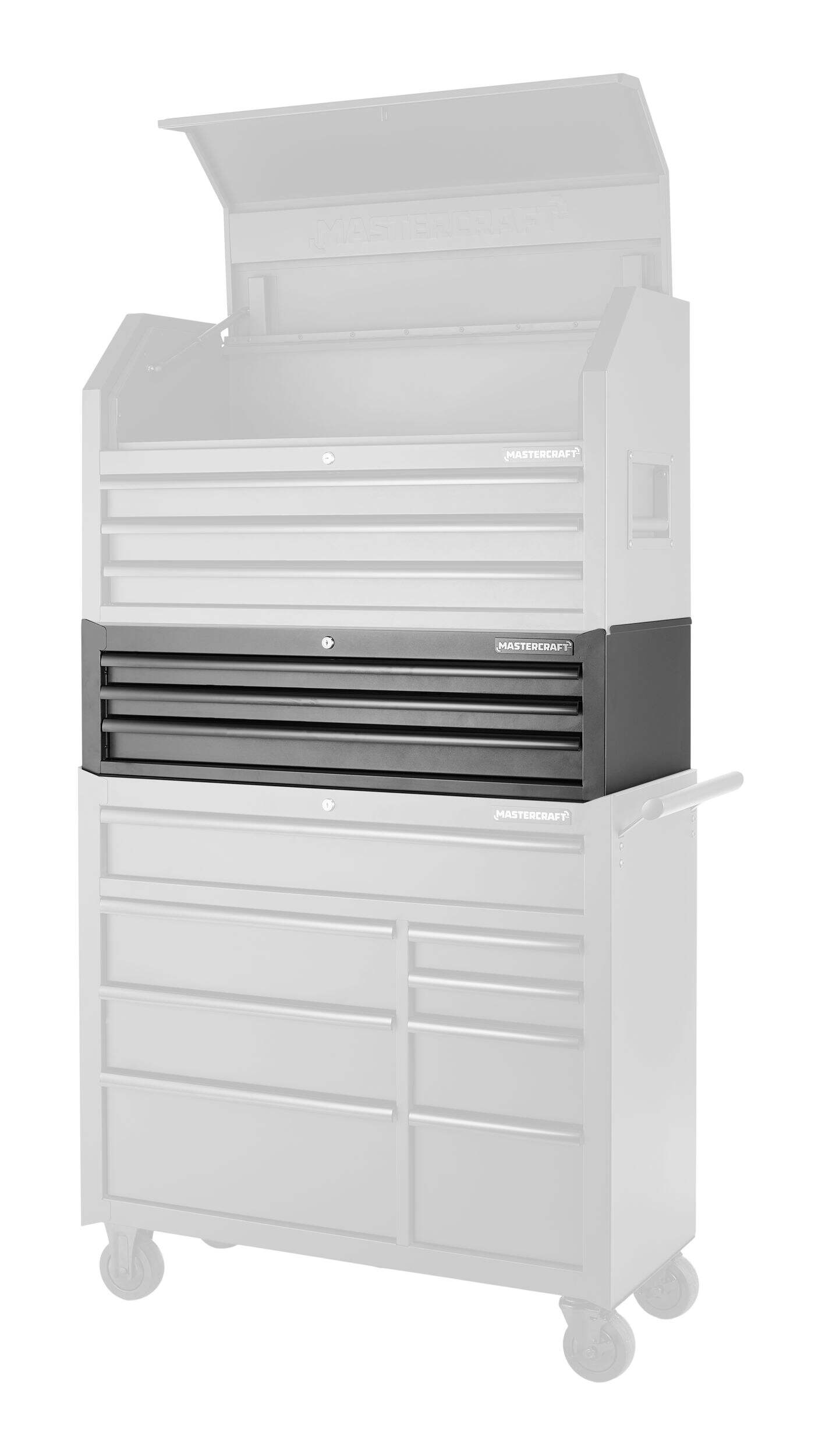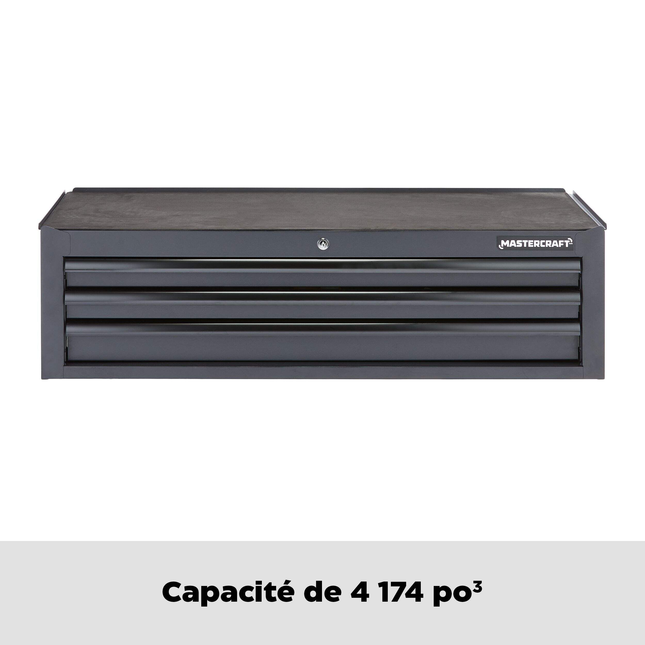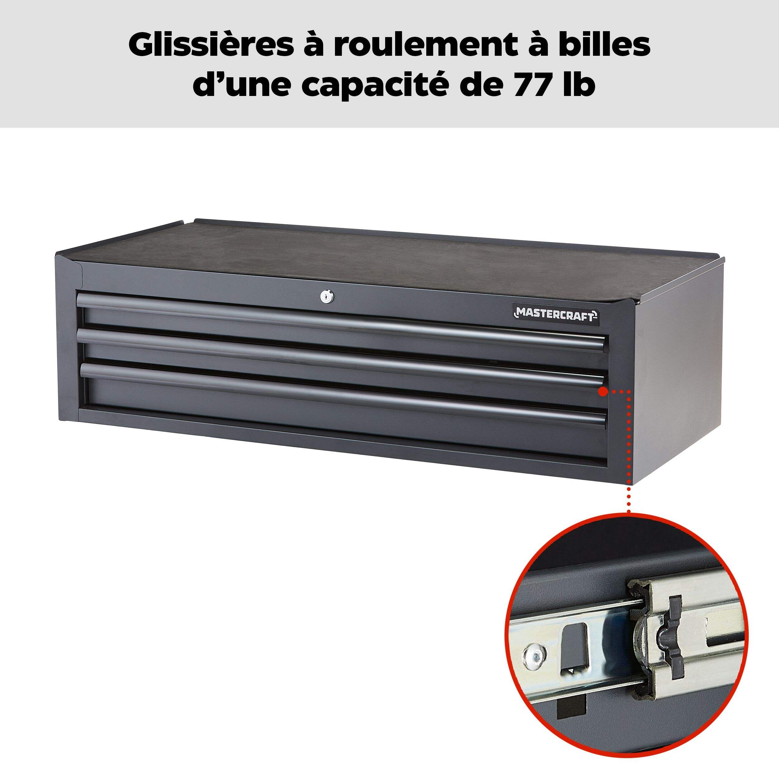 Article assorti aux articles 058-2529 (coffre Mastercraft à 3 tiroirs de 41 po) et 058-2531 (armoire à outils Mastercraft à 8 tiroirs de 41 po)