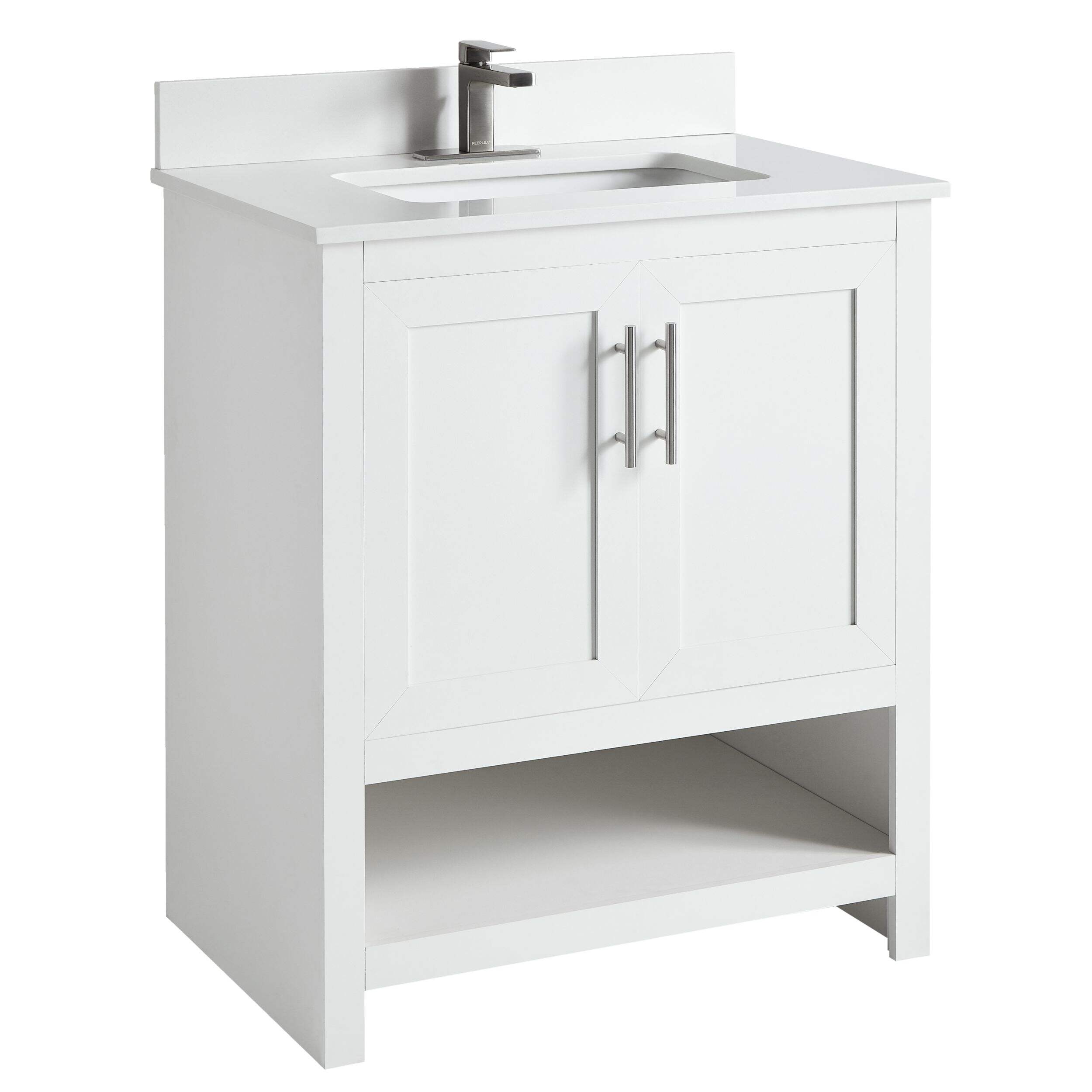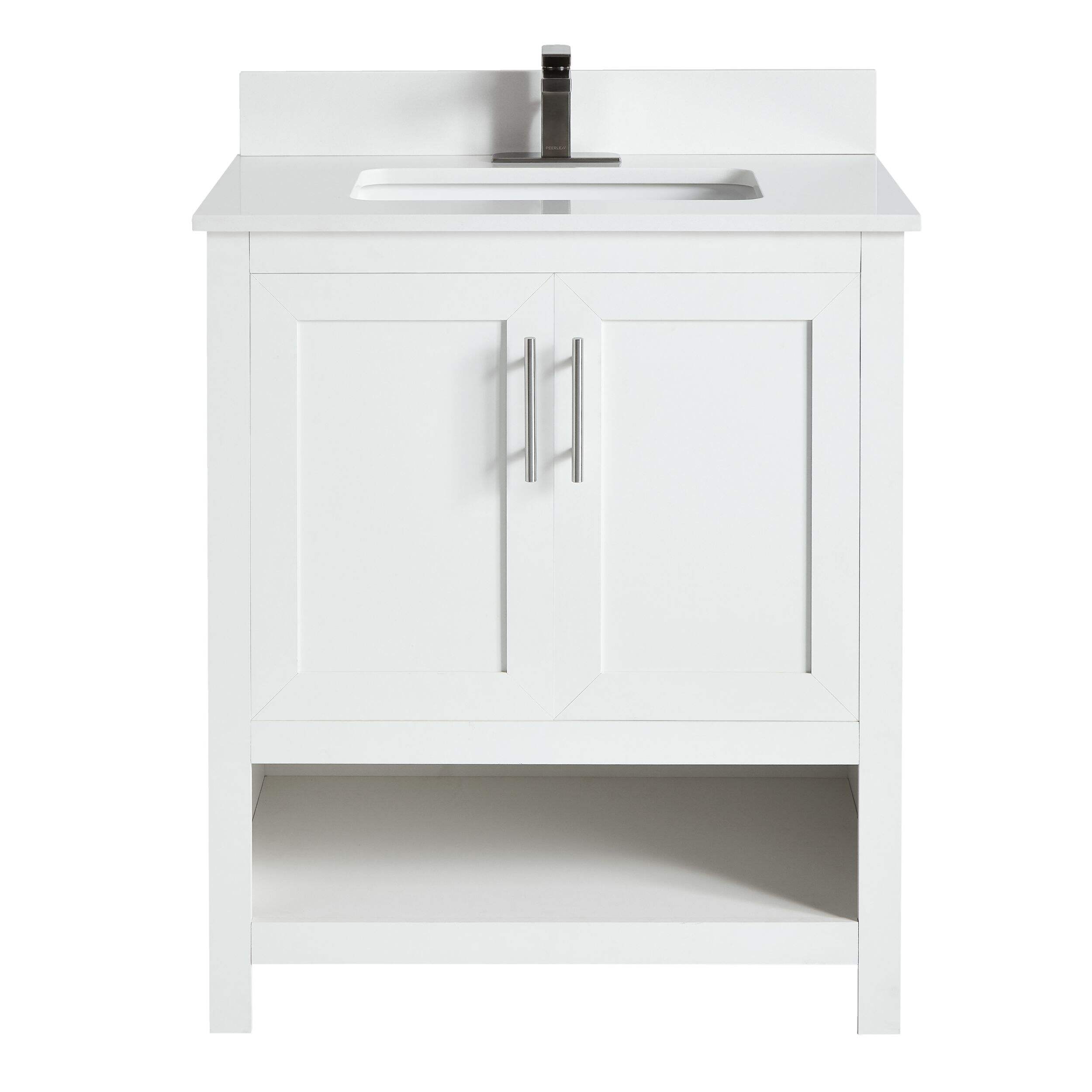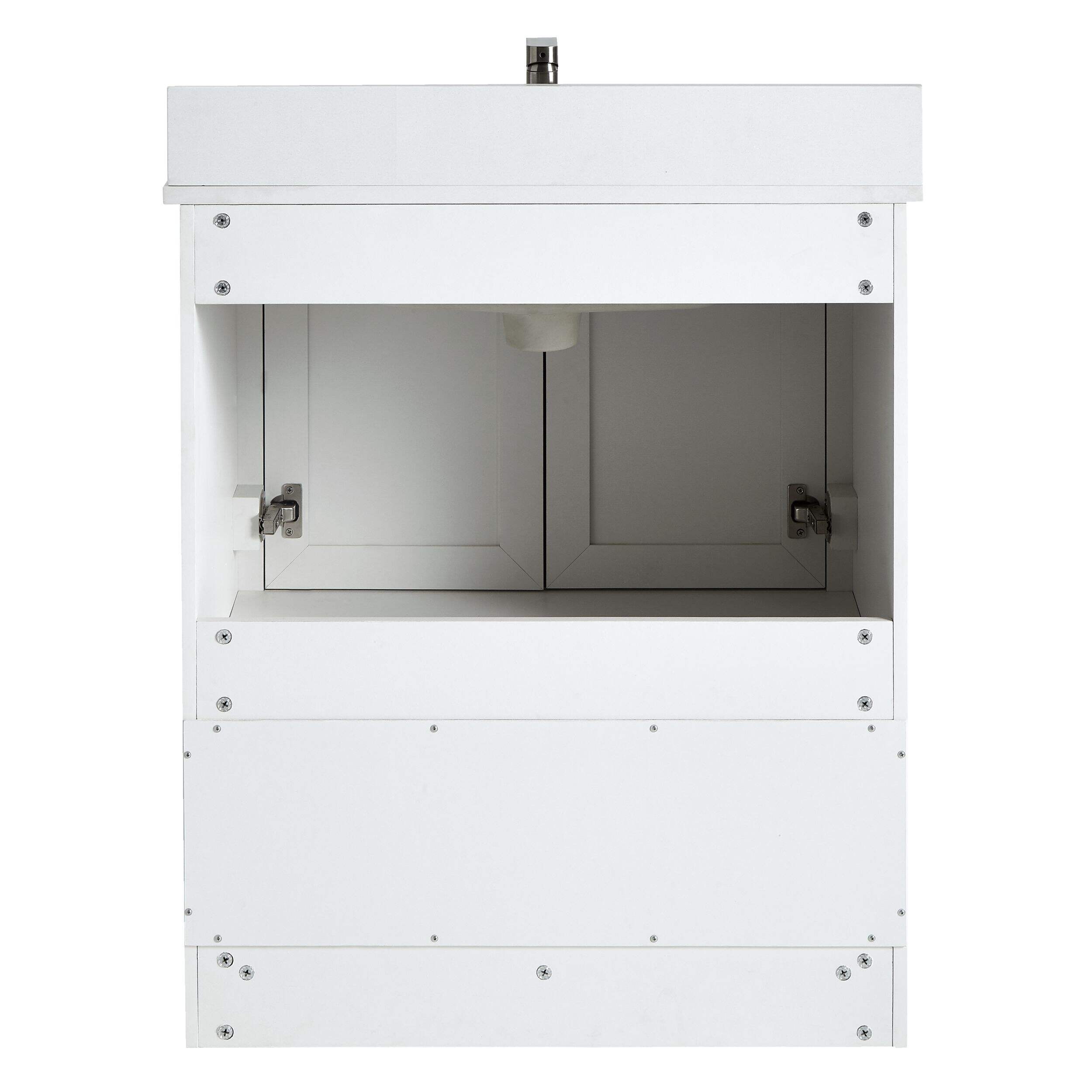 Ajoutez une touche d'élégance et de style à votre salle de bain avec le meuble-lavabo simple CANVAS Dover à 2 portes et dessus en pierre. Avec 2 portes d'armoire à fermeture en douceur, il garde vos articles essentiels bien rangés tout en réduisant le bruit, et sa tablette inférieure ouverte offre un accès facile aux serviettes et aux paniers. Le comptoir en pierre blanche épurée est facile à entretenir pour une utilisation sans tracas. Des trous prépercés simplifient l'installation, ce qui rend ce meuble-lavabo idéal pour améliorer la salle de bain.